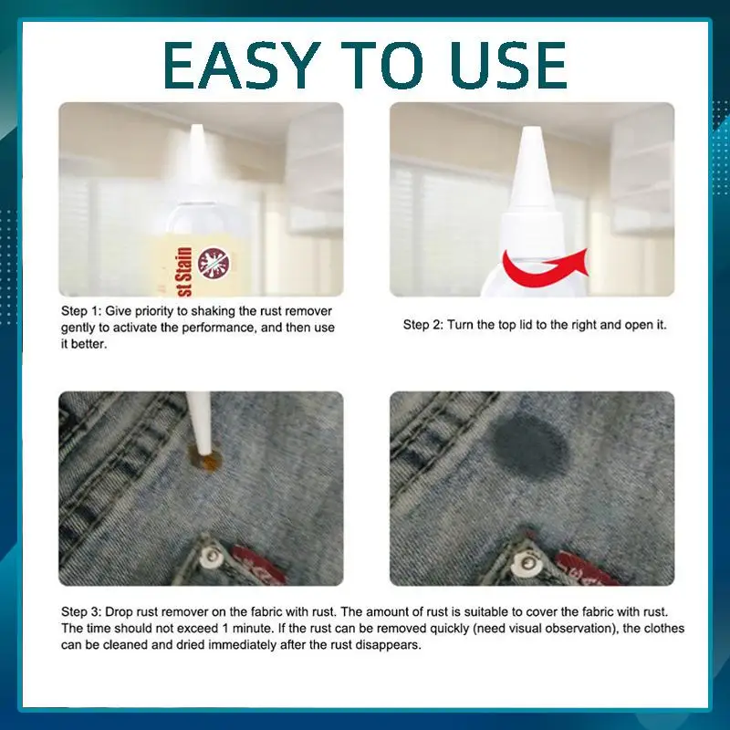 1. Непосредственно нанесите изделие на пятно от ржавчины (или на пятно, которое необходимо обработать).2. Упорное пятно от ржавчины может быть повторно использовано 2-3 раза.