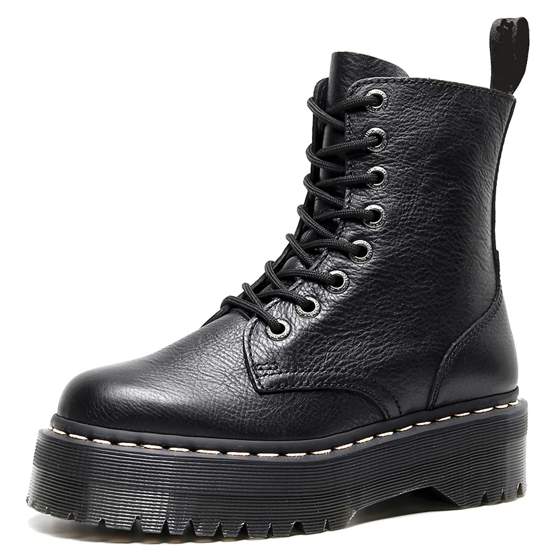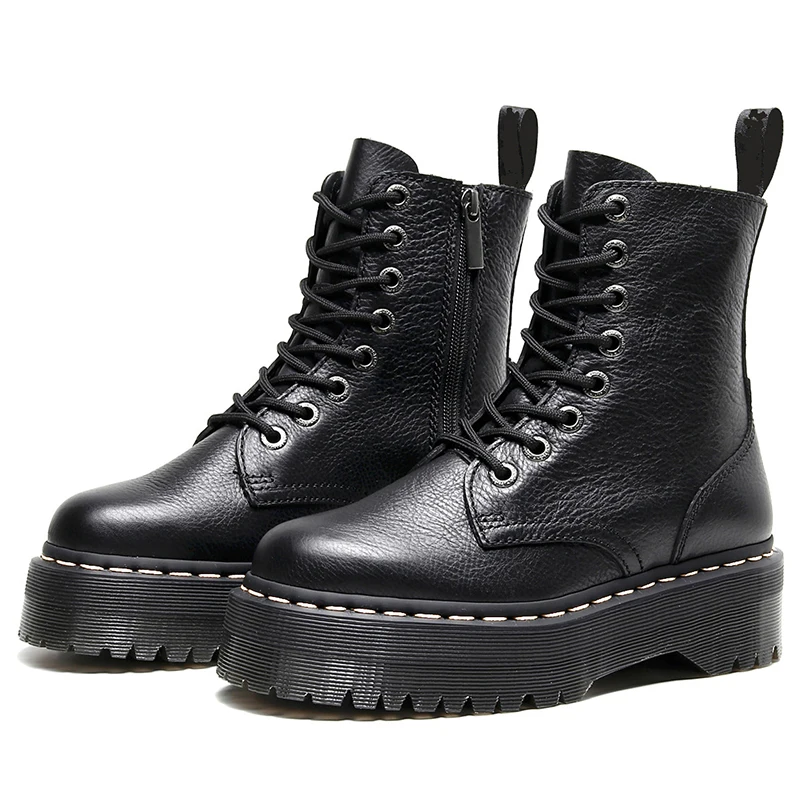 Ботинки женские из натуральной кожи, на платформе, массивные, мотоциклетные, батальных размеров