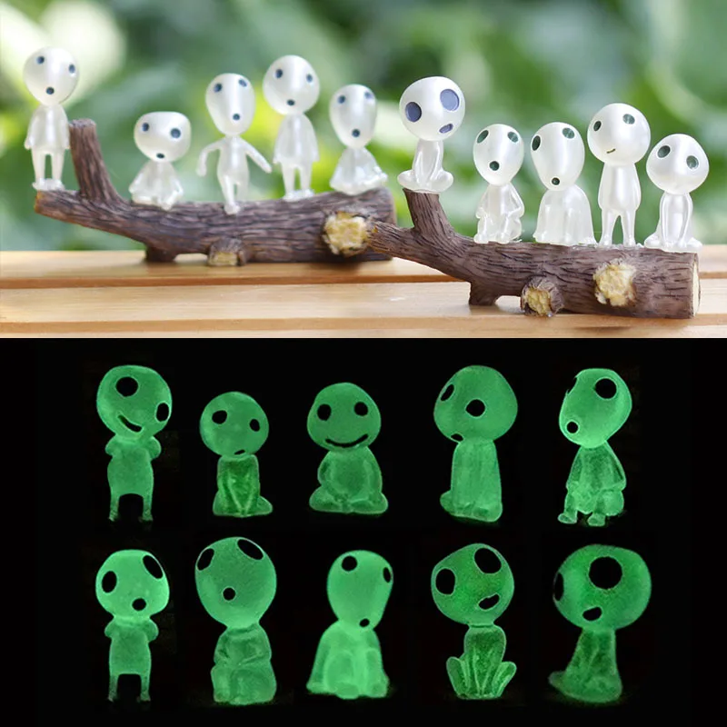 Миниатюрная экшн-фигурка Кодама, светящаяся в темноте кукла-эльф из мультфильма, домашний декор, сердце принцессы Мононоке