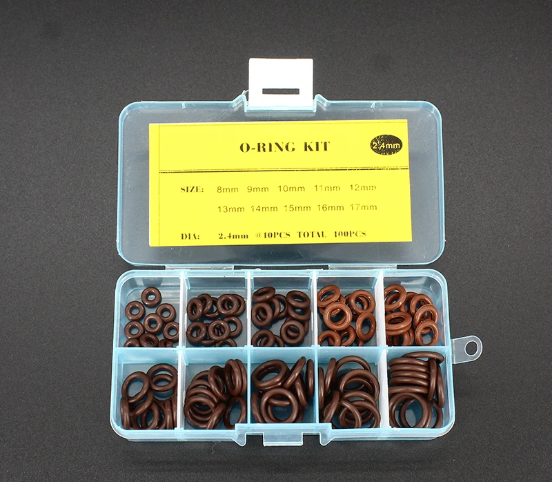 Вы получите коробку, содержащую следующие десять размеров, по 10 каждого размера, всего 100 уплотнительных колец.