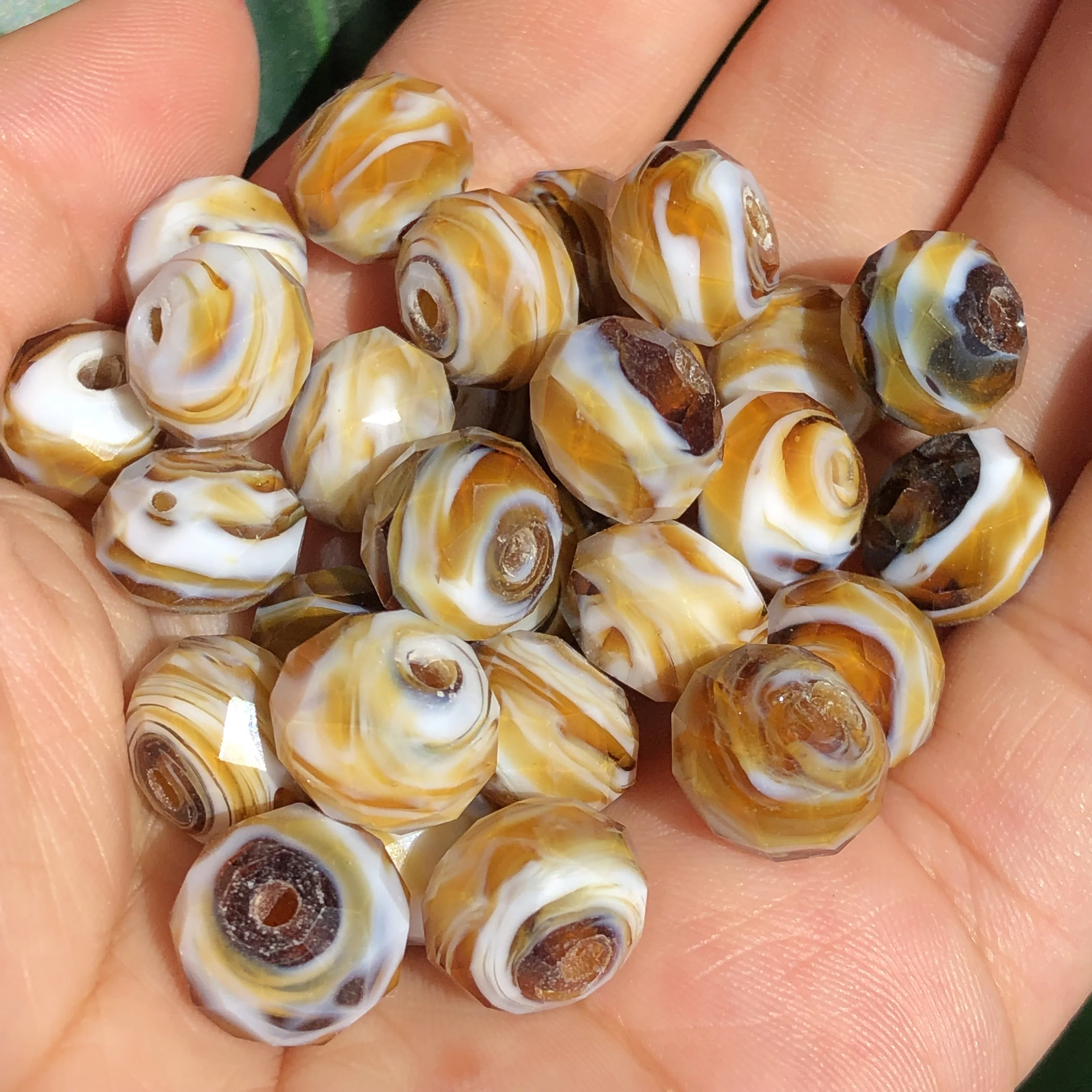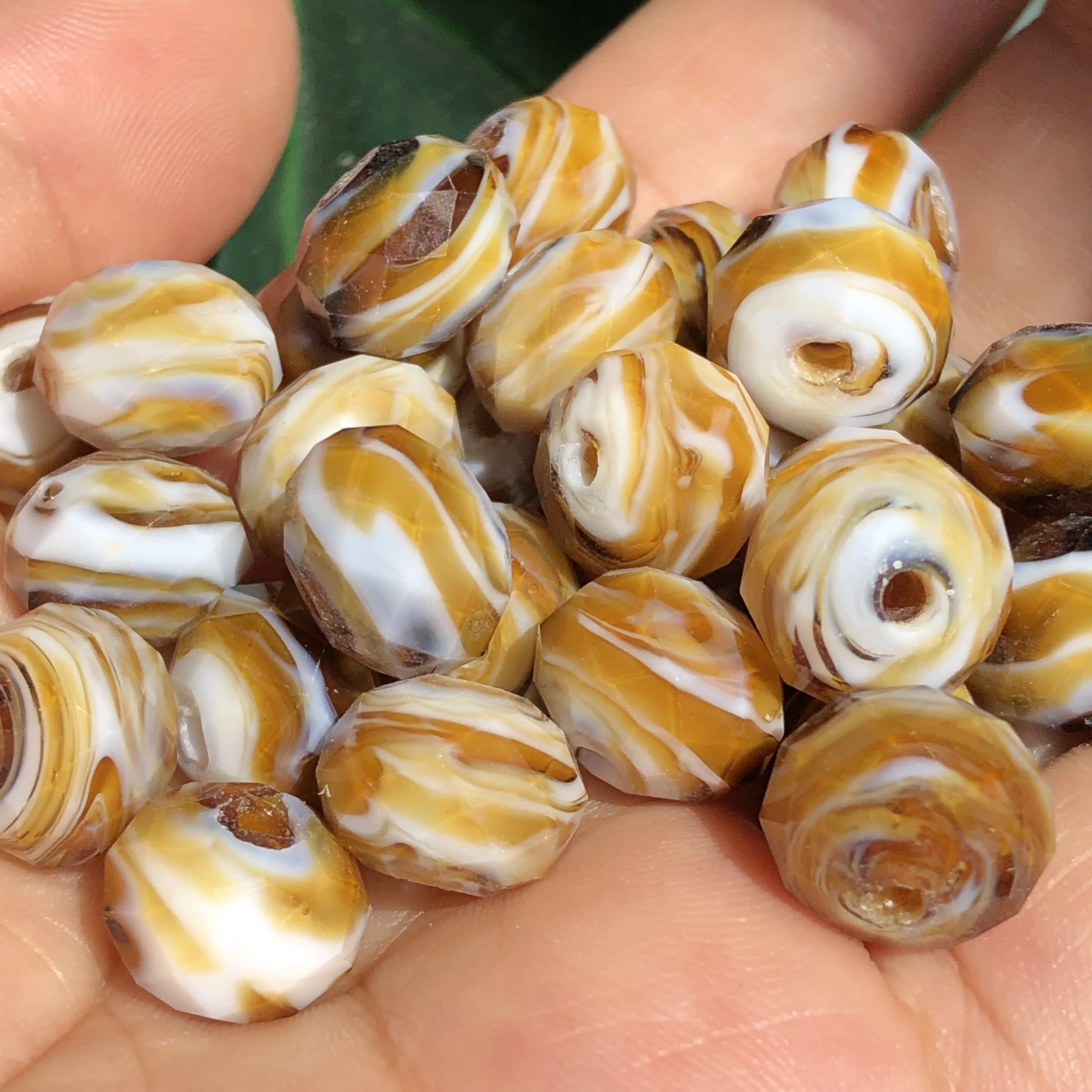 Натуральный граненые желтые полосатые Агаты Оникс Камень гладкой Св...