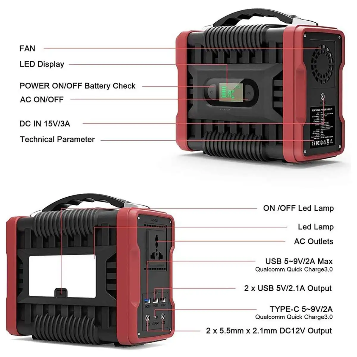 Портативная электростанция, 220 В, 320 Вт, 60000 мАч, внешний аккумулятор для автомобиля, солнечный генератор, источник питания для хранения энергии, для кемпинга на открытом воздухе, путешествий