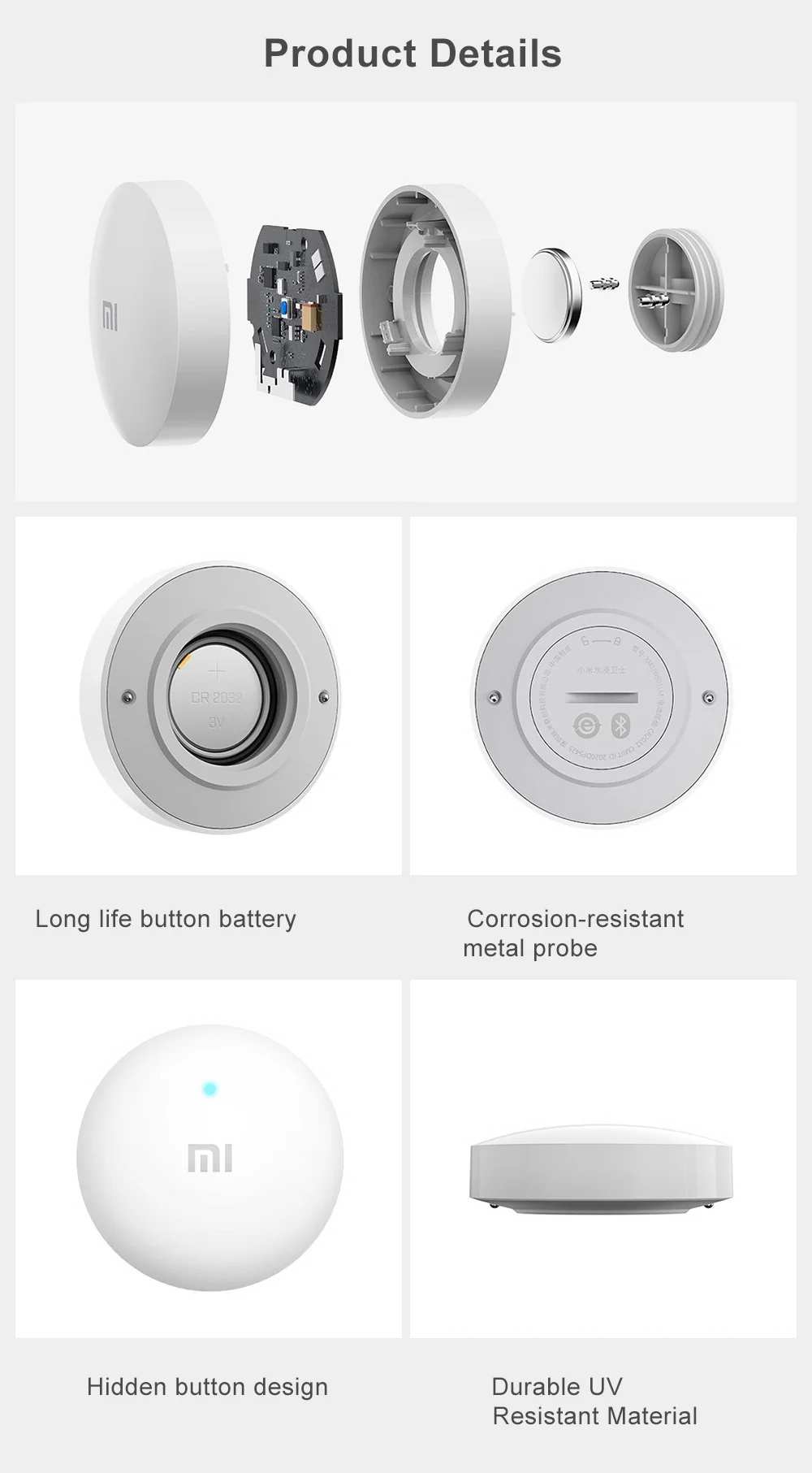 Xiaomi immersion Guards использует электрическую проводимость воды. Когда высота погружения достигает 1 мм, два металлических зонда образуют путь, чтобы связываться с другими интеллектуальными продуктами *, чтобы выдавать напоминания и принимать своевременные контрмеры, чтобы избежать больших потерь.