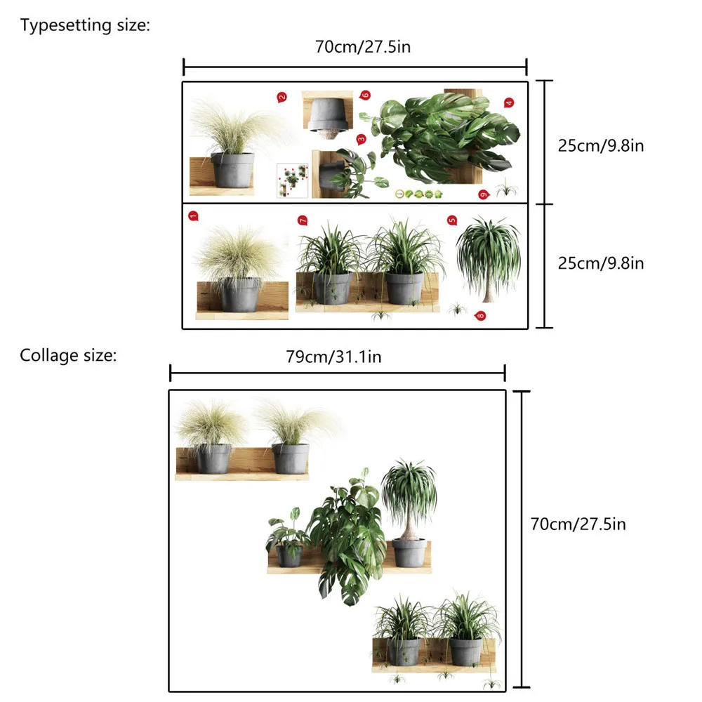 Водонепроницаемые настенные наклейки с зелеными растениями, Трехмерные настенные наклейки в горшке, Настенная Наклейка сделай сам, Декор для дома и офиса, Настенный декор