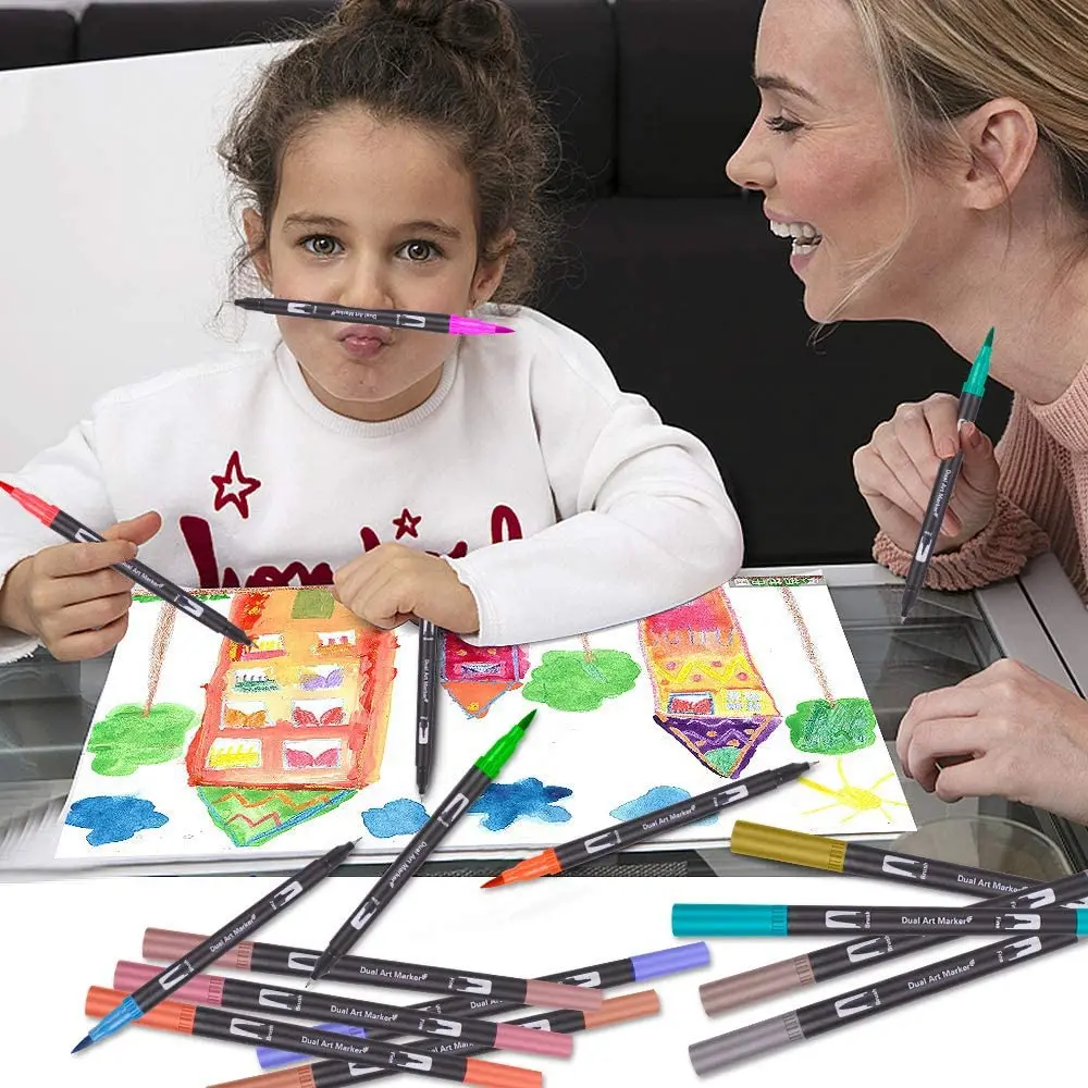 132 цветные ручки, ручки с двойным наконечником, художественные маркеры с наконечником кисти для окрашивания, эскизов, рисования-подарок для детей и взрослых