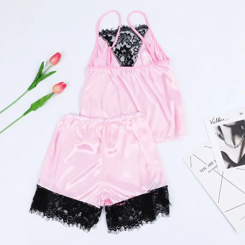 Сексуальные женские кружевные пижамные комплекты, 2020, без рукавов, на бретельках, пижамы, 2 шт., с отделкой, Атласный топ на бретельках, ночное белье, ночные рубашки, нижнее белье, пижама MujerПримечания:1. Пожалуйста, учитывайте разницу в 1-3 мм из-за ручного измерения, спасибо за понимание!2. Из-за разницы между различными мониторами, пожалуйста, поймите, что изображение может не отражать фактический цвет товара.