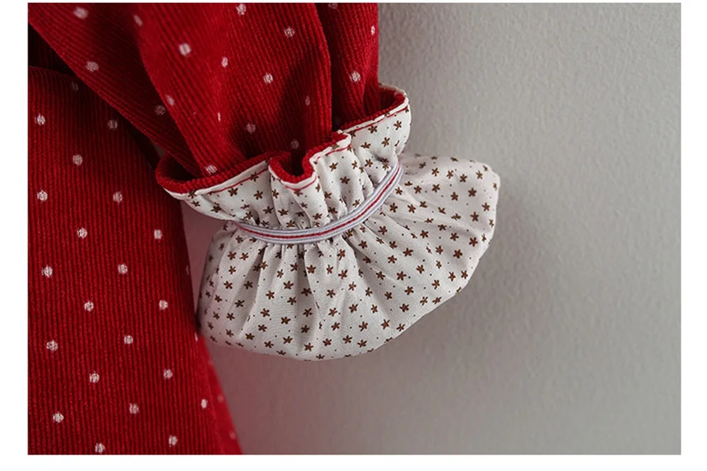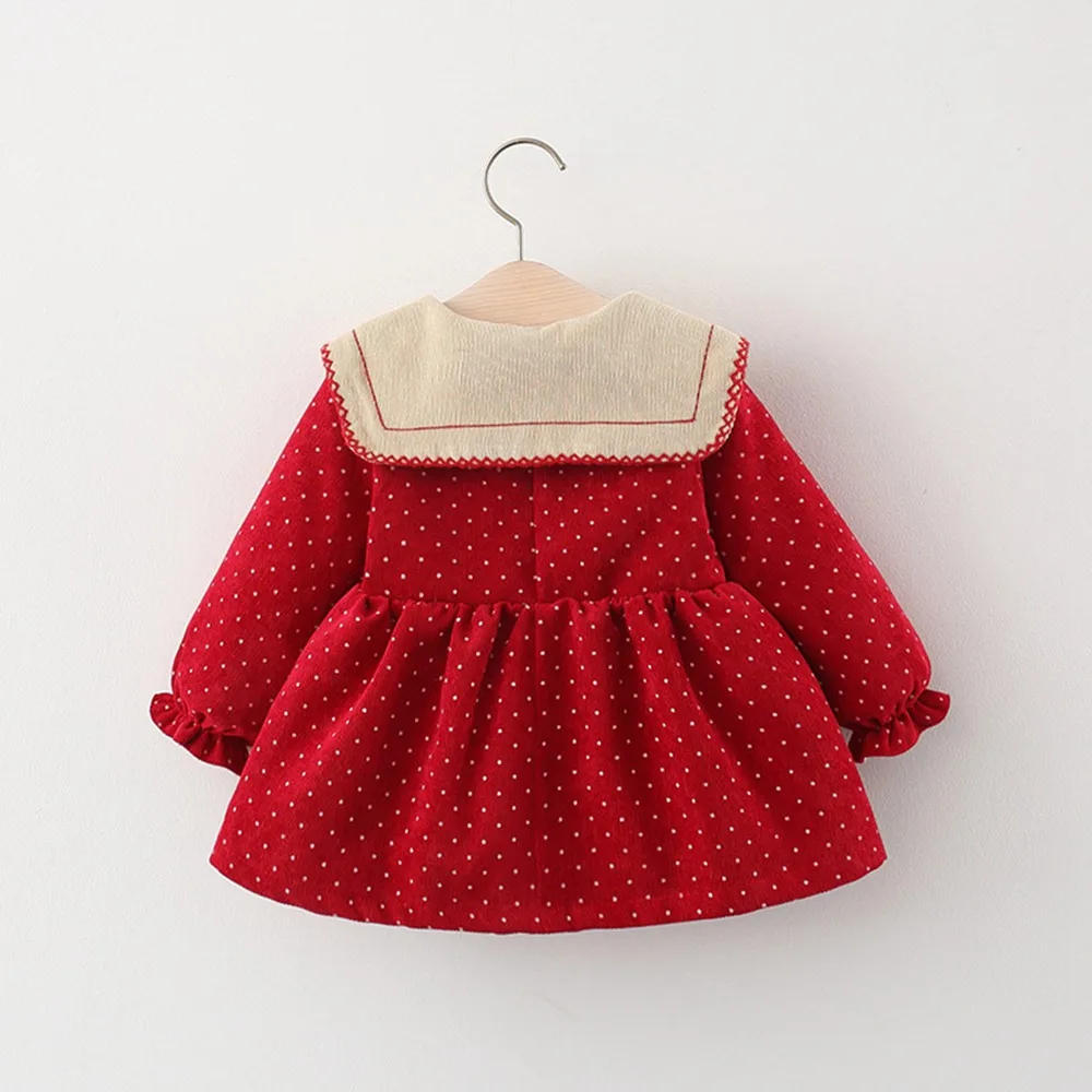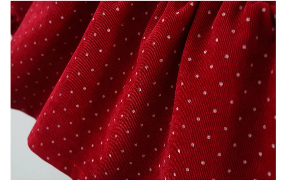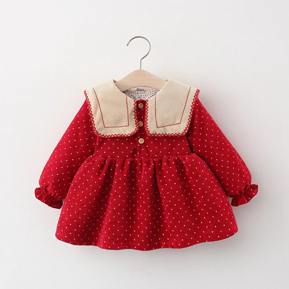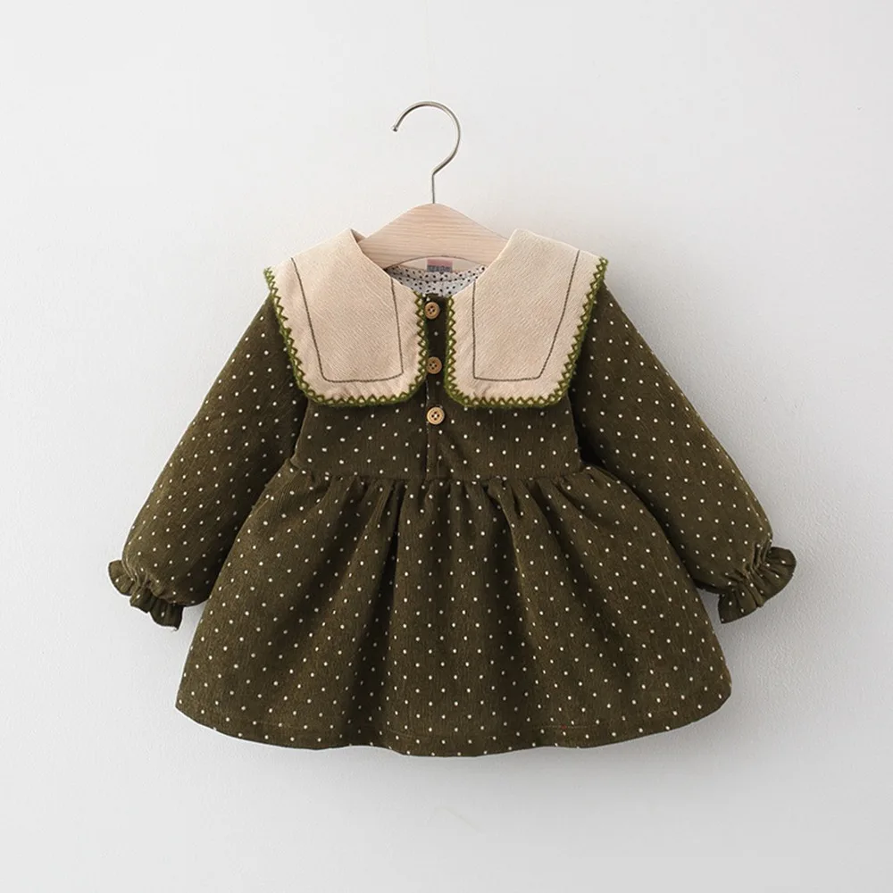 Платье детское вельветовое в горошек, с длинным рукавом и отложным воротником