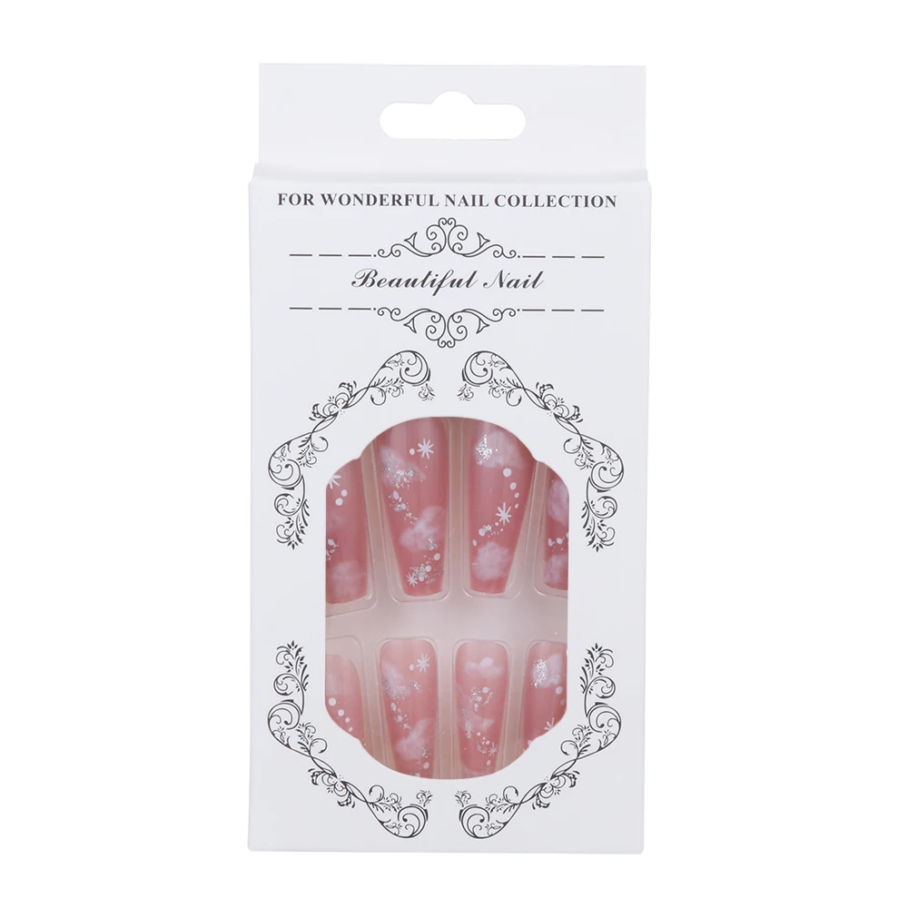 Накладные ногти в форме снежинок, 24 шт.компл., матовые, с полным п...
