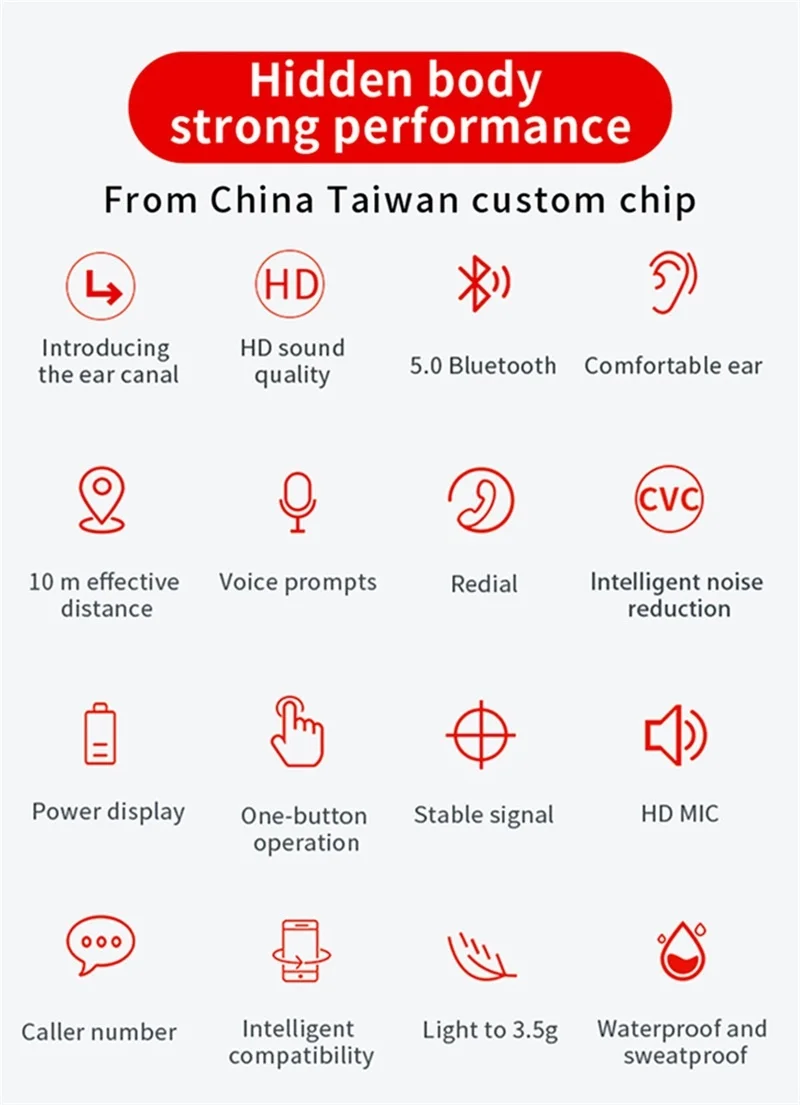 Миниатюрные наушники-вкладыши 5,0 Bluetooth, Hi-Fi беспроводная гар...