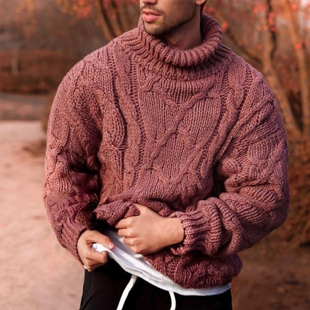 Мужской трикотажный свитер с высоким воротником, на осеньзиму