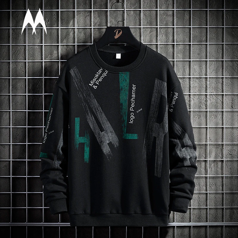 Свитшот мужской с круглым вырезом, корейский топ с принтом в стиле пэчворк, Повседневная рубашка с длинным рукавом, одежда для осени