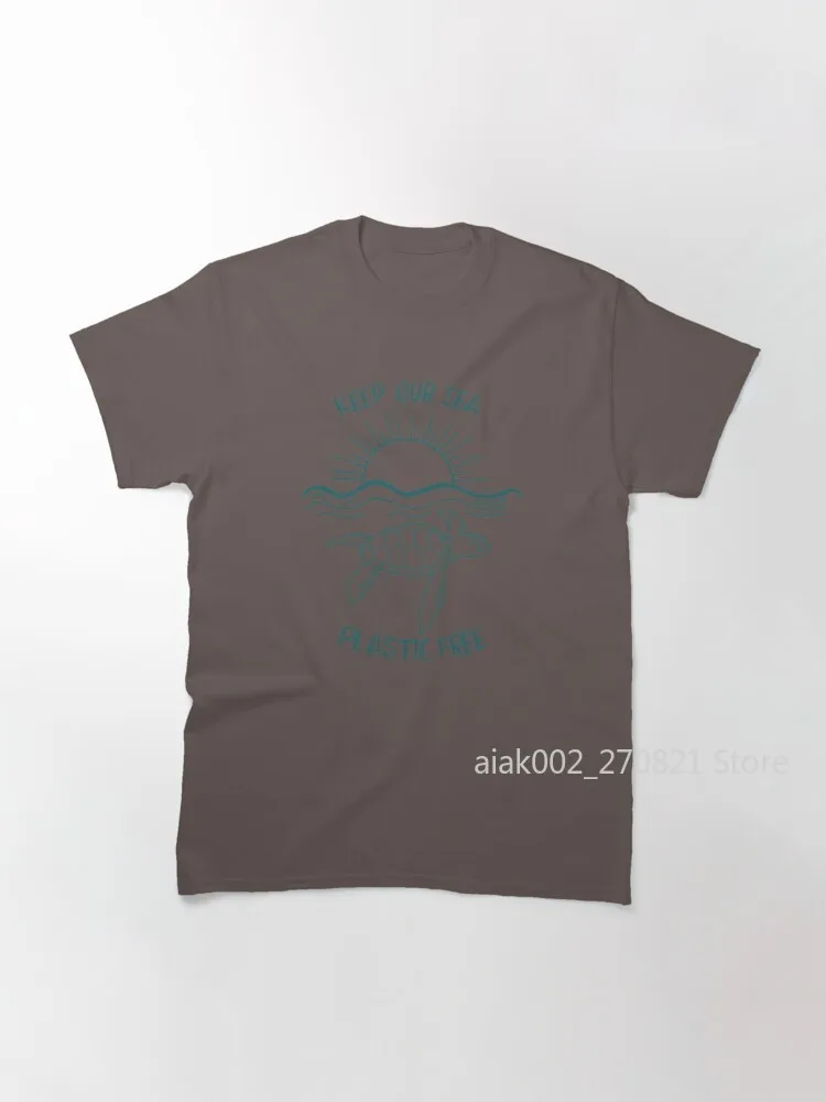 Классическая футболка с надписью Keep our sea plastic free happy sea черепаха, плавающая в чистой воде