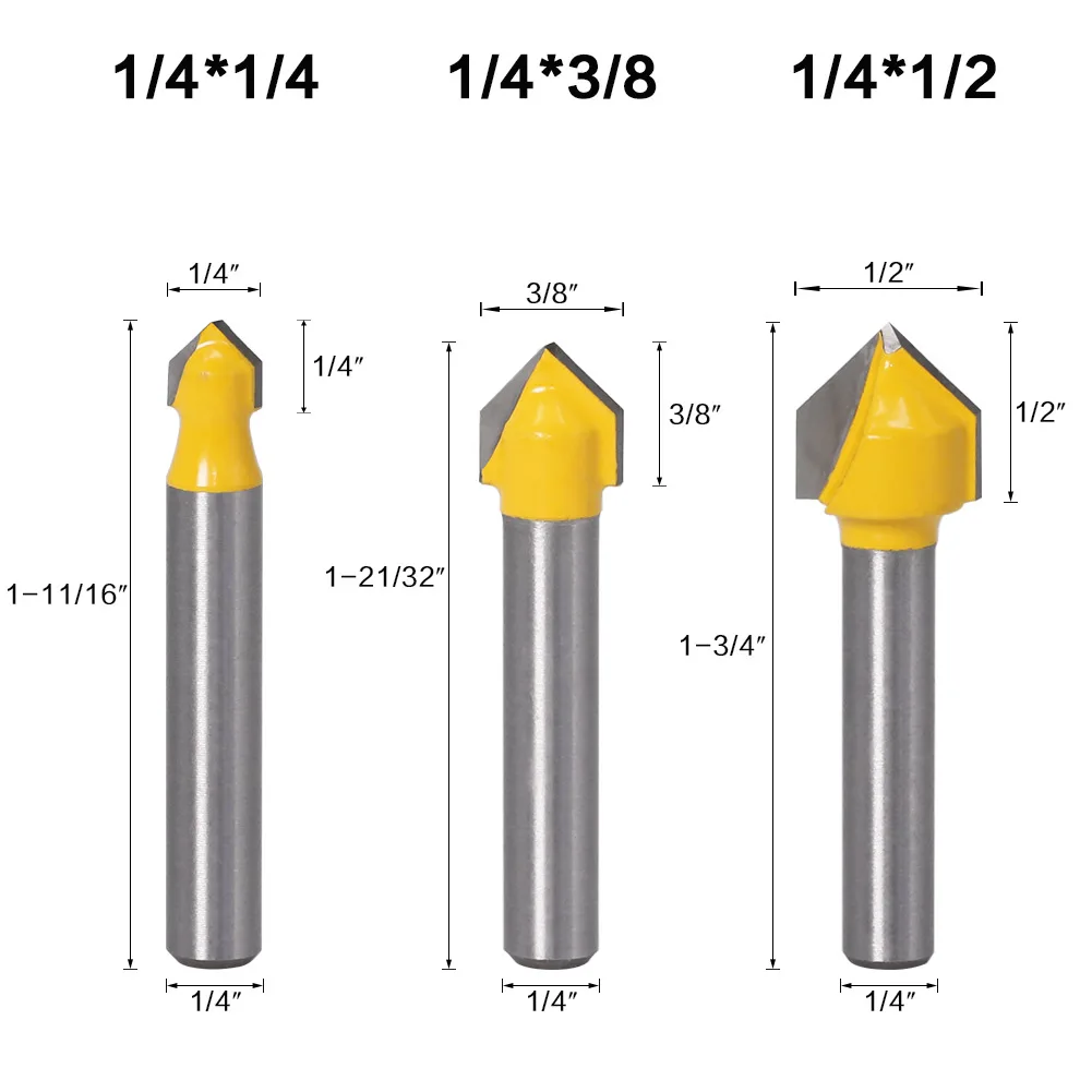 Набор концевых фрез с хвостовиком 14 дюйма, Концевая насадка с V-образным пазом 90 градусов для быстрорежущих сверл, инструменты для резки
