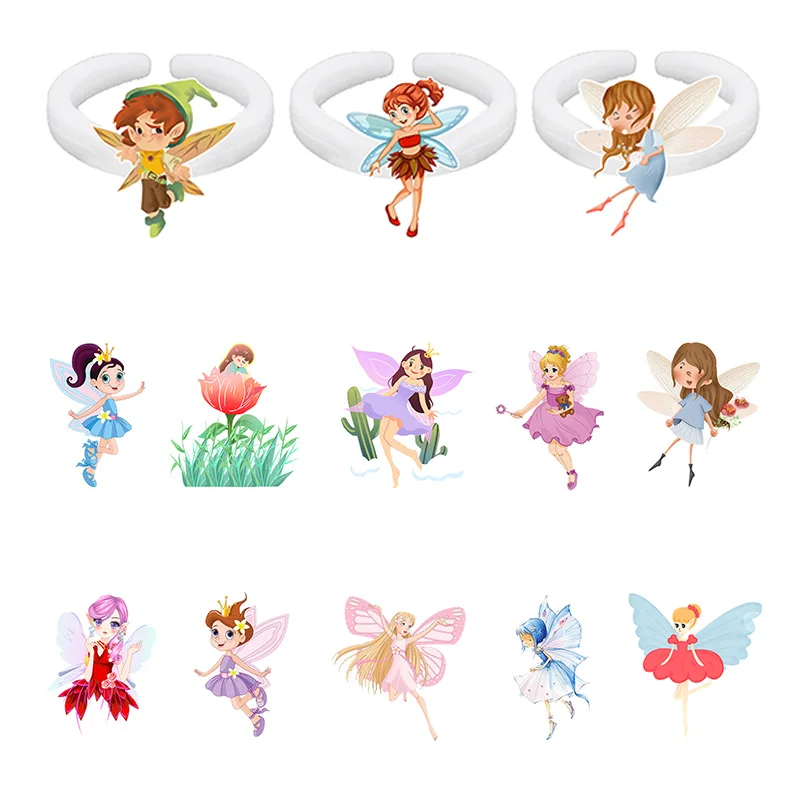 Disney Bright Феи Креативный дизайн кольцо белое круглое милое кольцо из смолы акриловое кольцо для девочек вечерние аксессуары кольцо XDS962Фотографии товара: