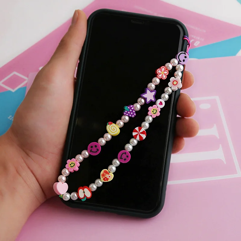 Цепочка для телефона Женская, из мягкой глины, с бусинами и жемчуго...