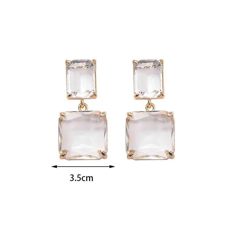 Висячие серьги 2021, трендовые Серебристые геометрические прозрачные квадратные стеклянные хрустальные свадебные серьги для женщин, ювелирные изделия, аксессуары