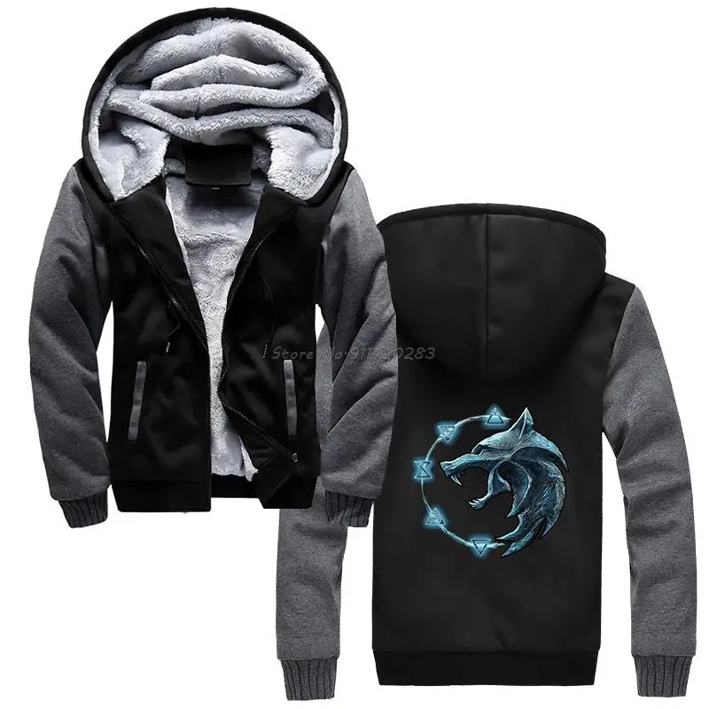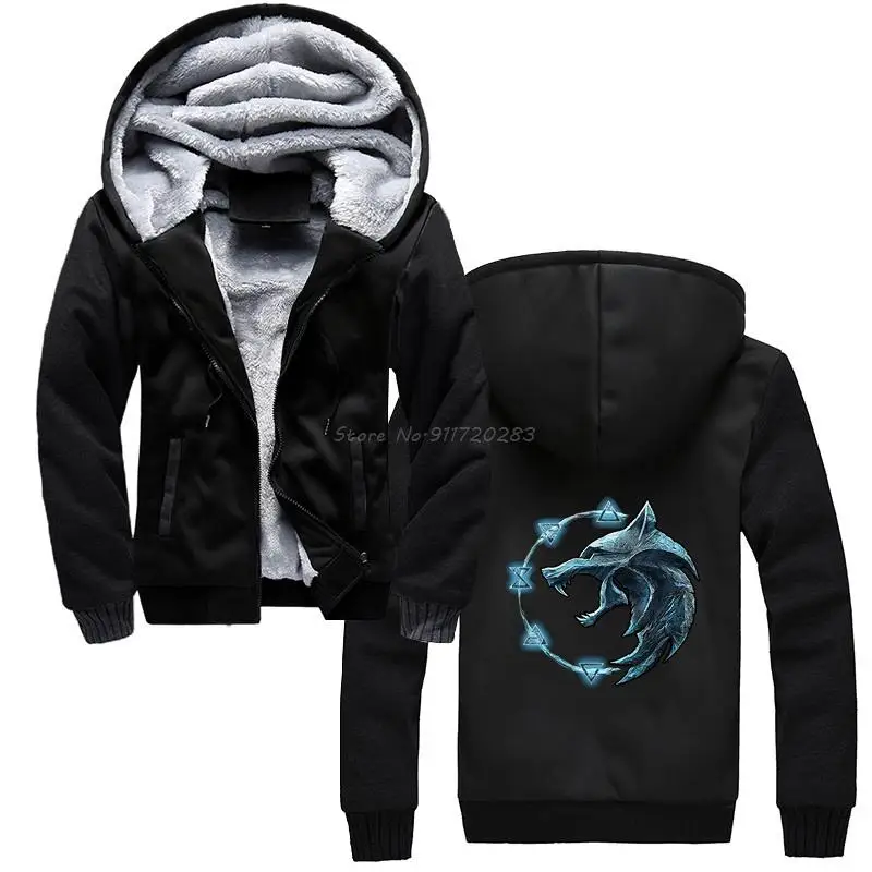 Мужская толстовка с капюшоном The-Witcher Symbol Wolf, зимняя толстовка, уличная одежда
