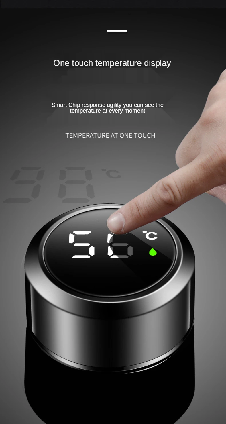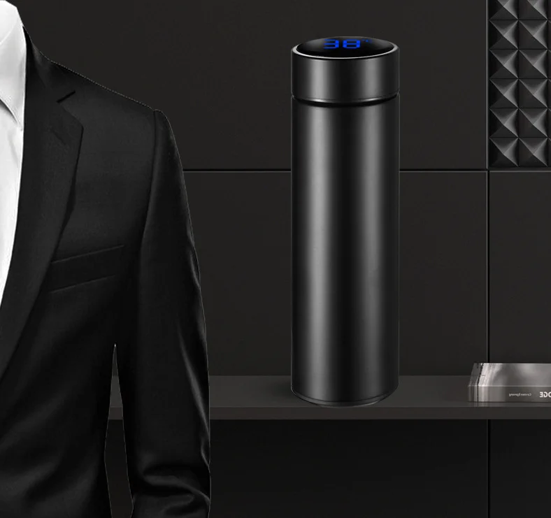 Название продукта: умный термос чашка Ёмкость: 500 мл Размеры: 23 см; При росте 6,5 см в диаметре на дне чашки (500 мл) Цвет: розовый/синий/белый/черный/пистолет цвет материал; 304 внутри и 201 снаружи Изоляция: 12 часов ≥ 45 ℃