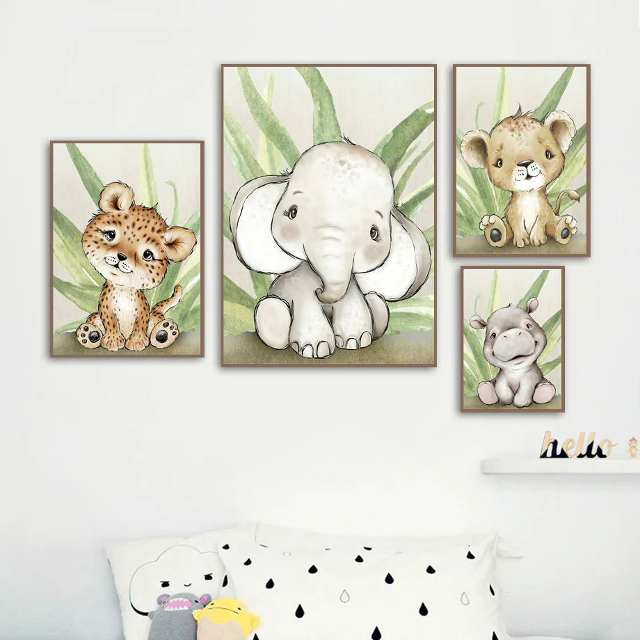 Жираф, слон, Лев, кролик, медведь, детская настенная живопись, холс...
