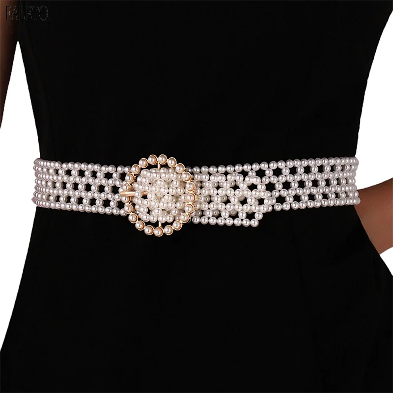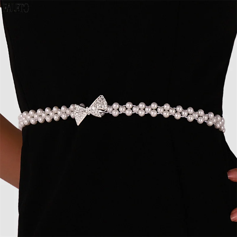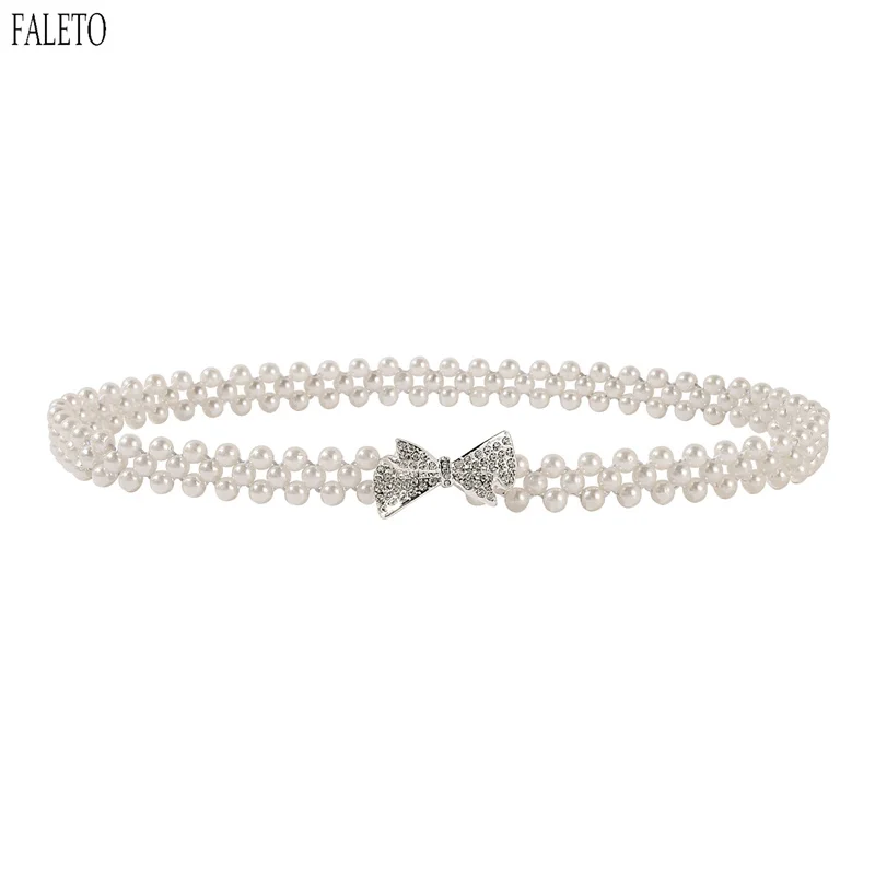 Женский жемчужный пояс Faleto, эластичный свадебный пояс с кристаллами, пояс для подружки невесты, элегантный пояс