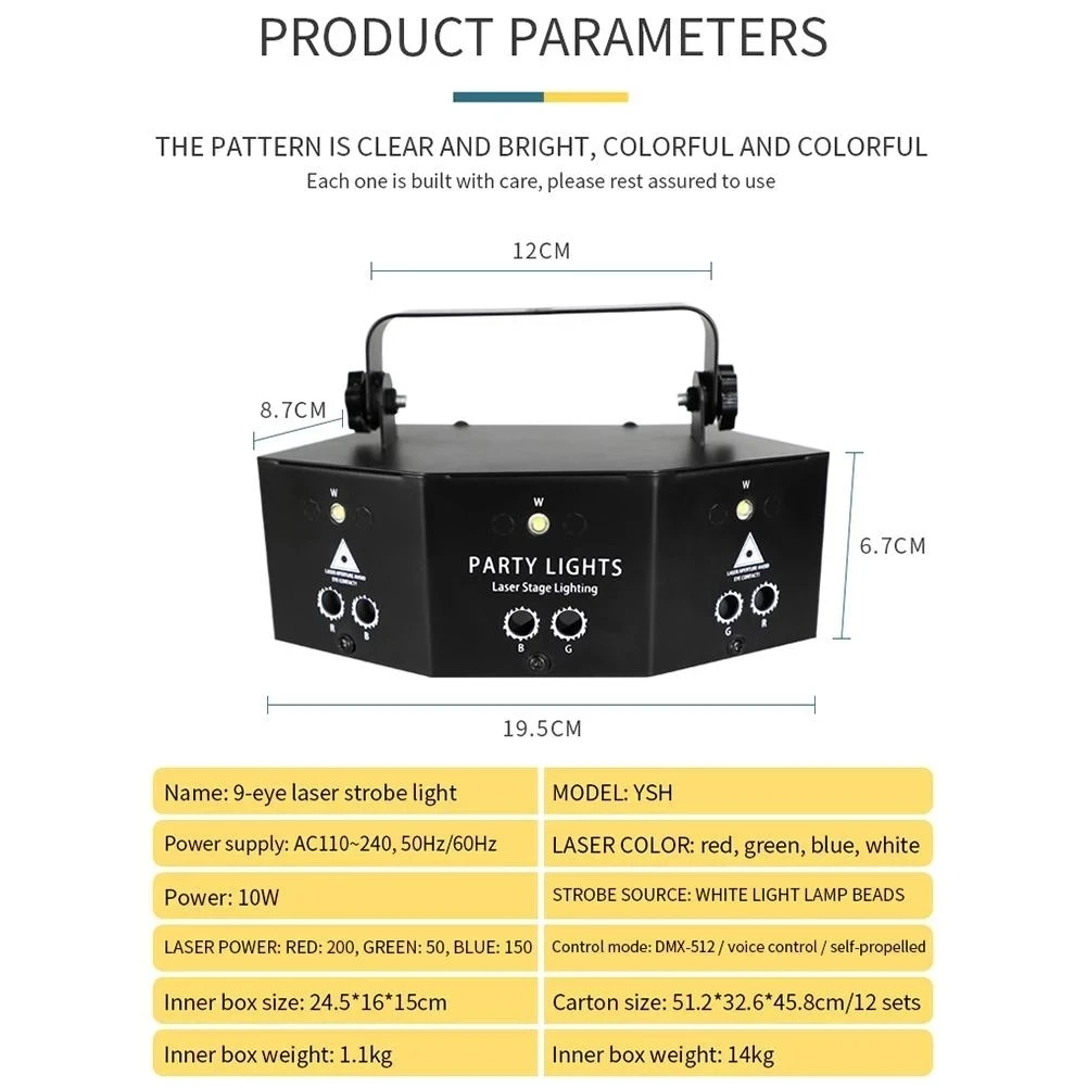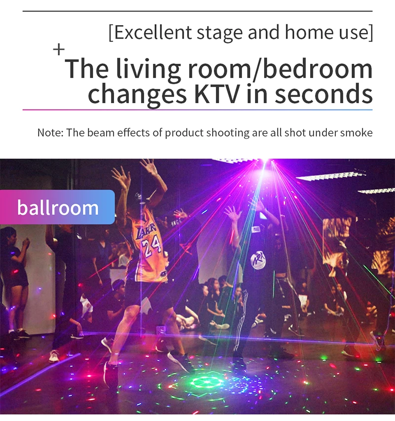 7. Этот мини-светильник специально разработан для использования в помещении, с цветными балками, что делает вашу комнату полной волшебных цветов. Подходит для семейных встреч, дискотек, танцевальных залов, КТВ, баров, сцены, отелей, ночных клубов, банкетов, игровых площадок и т. д.