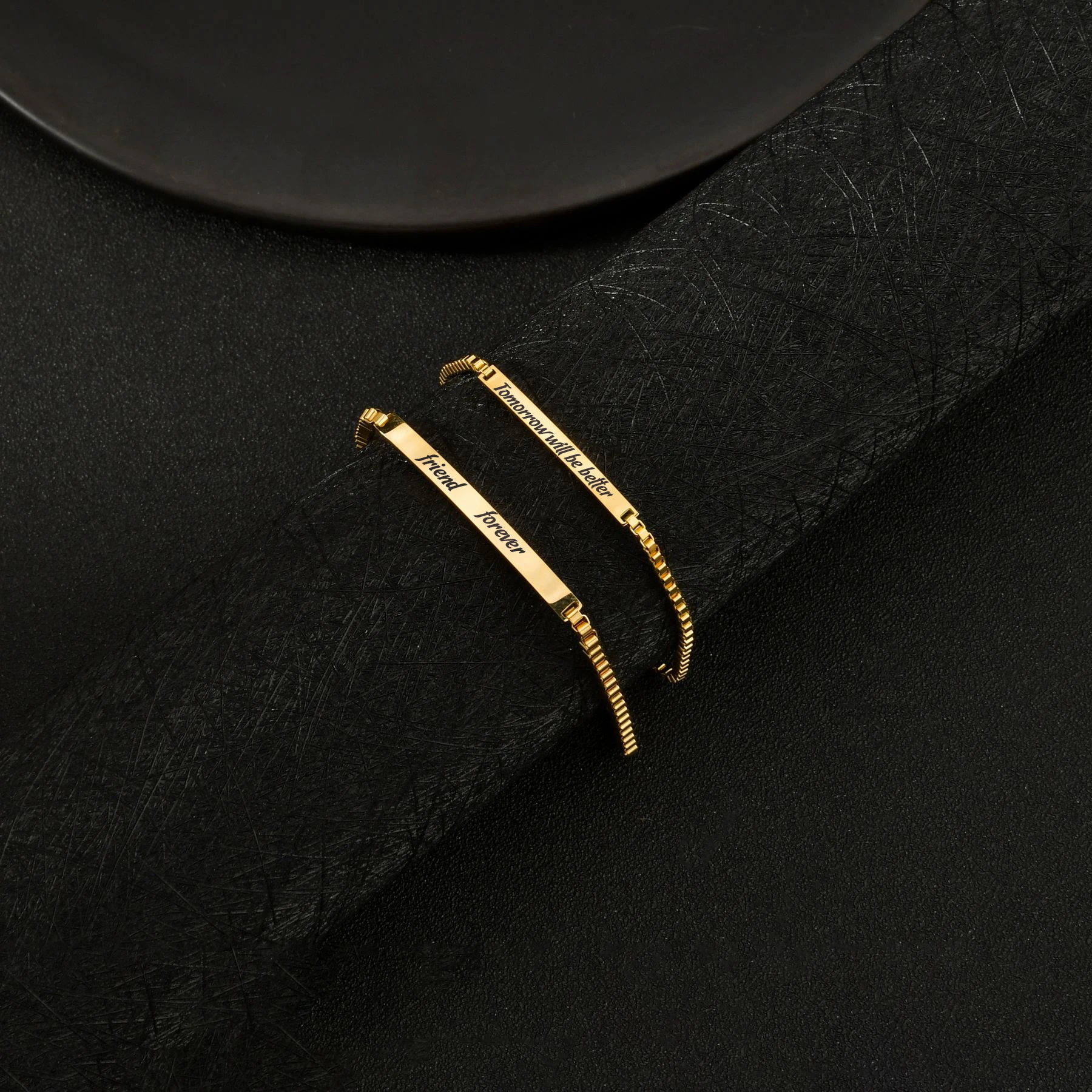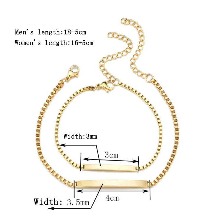 Элегантный на заказ с гравировкой Имя Дата персонализированные Парные браслеты для женщин мужчин коробка цепь ювелирные изделия из нержавеющей стали ювелирные изделия подарки