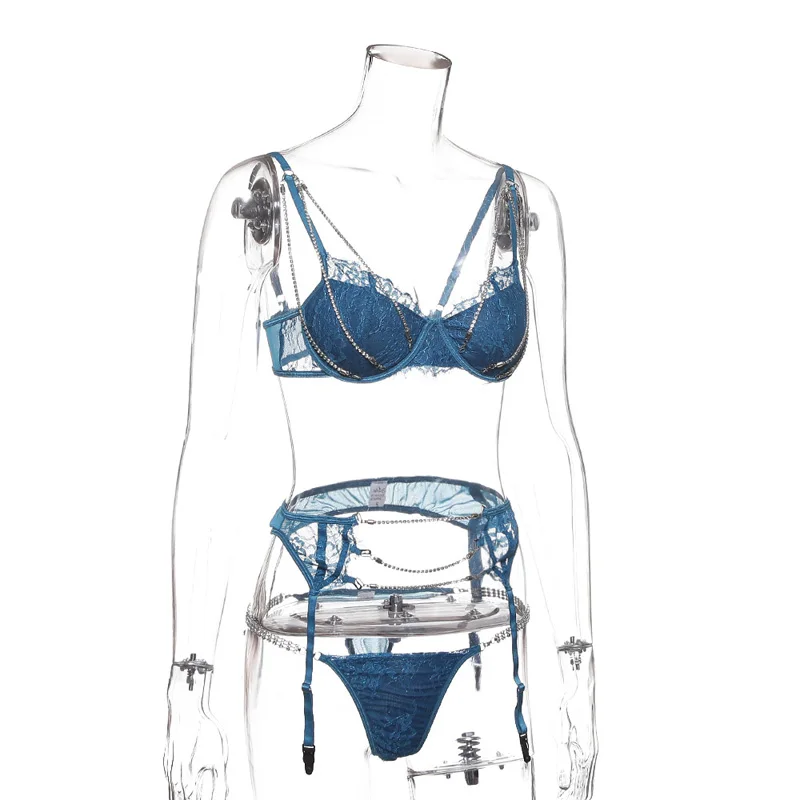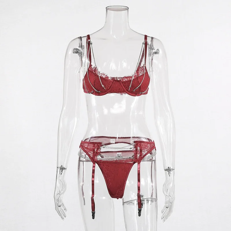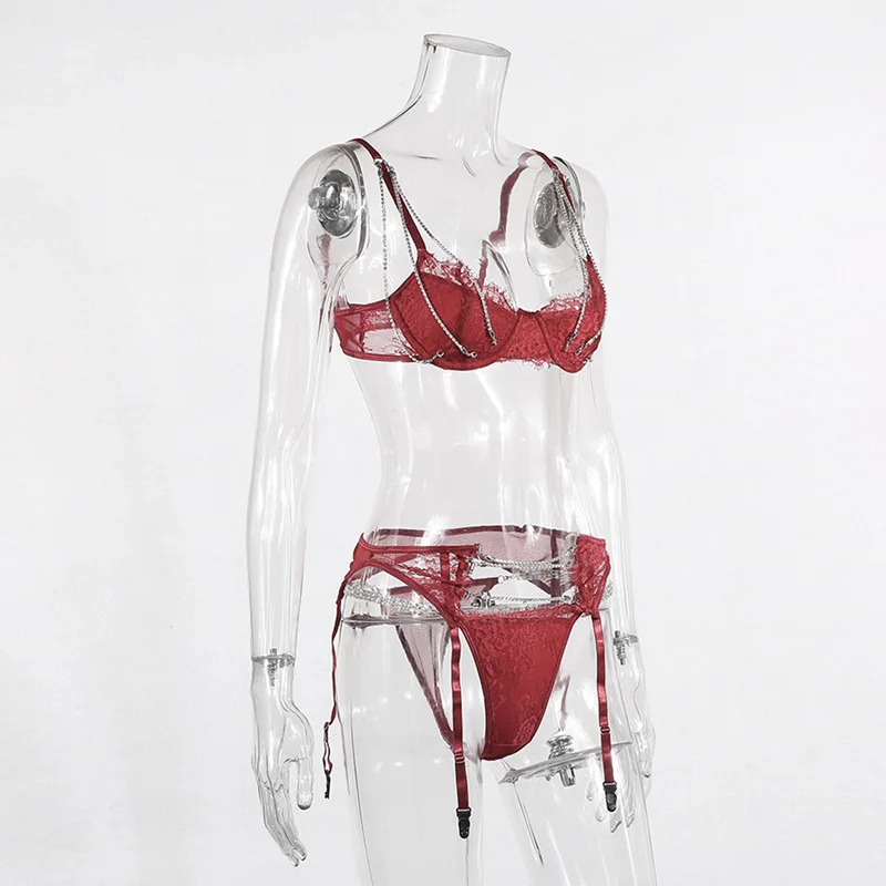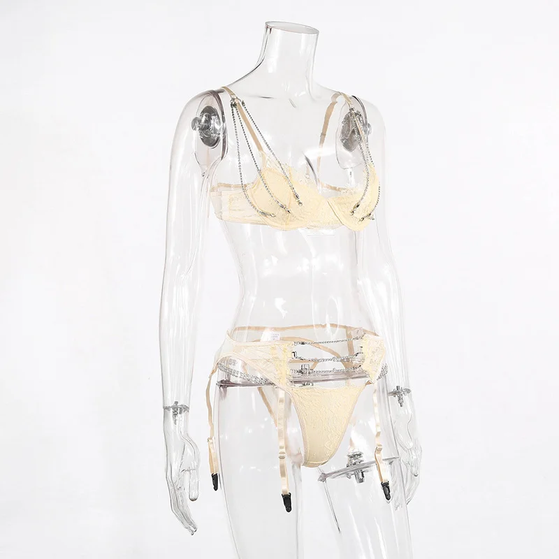 Соблазнительное нижнее белье с металлической цепочкой, костюм-тройк...