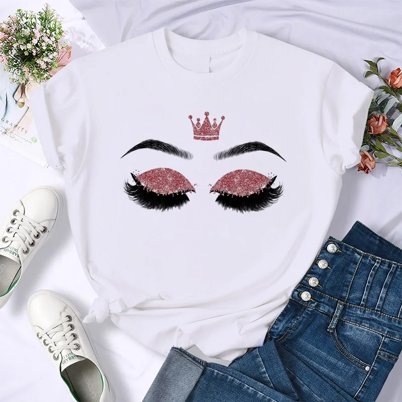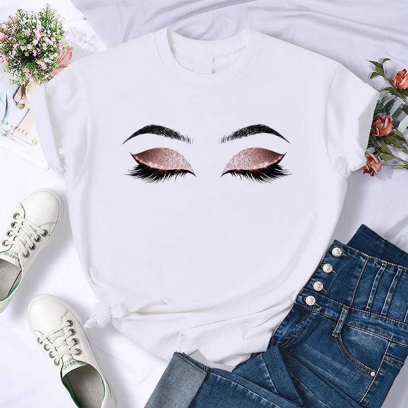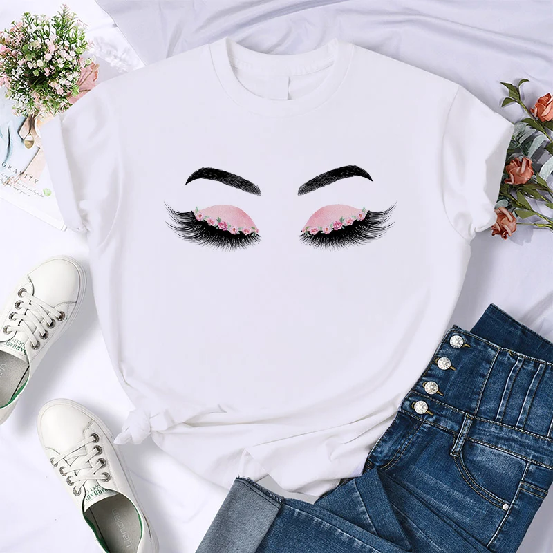 2021 женская футболка с ресницами, глазами и бровями, женская футболка, Повседневная забавная футболка, топ в подарок для молодых девушек