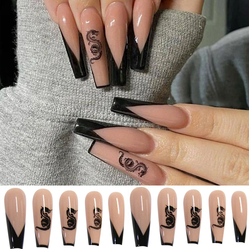 DesignsFull Cover False Nails with Dragon/Snake/Skull