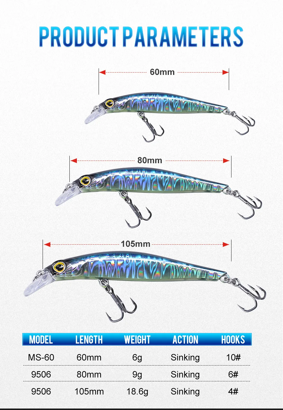 Приманка рыболовная, 60 мм, 6 г, 80 мм, 9 г, 105 мм, 18,6 г, тонущи...