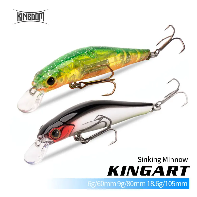 Тонущий гольян KINGDOM KINGART, 6 г, 60 мм, 9 г, 80 мм, 18, 5 г, 105 мм, приманка для рыбной ловли с тройным крючком VMC, джеркбейты, рыболовные приманки