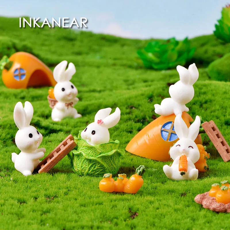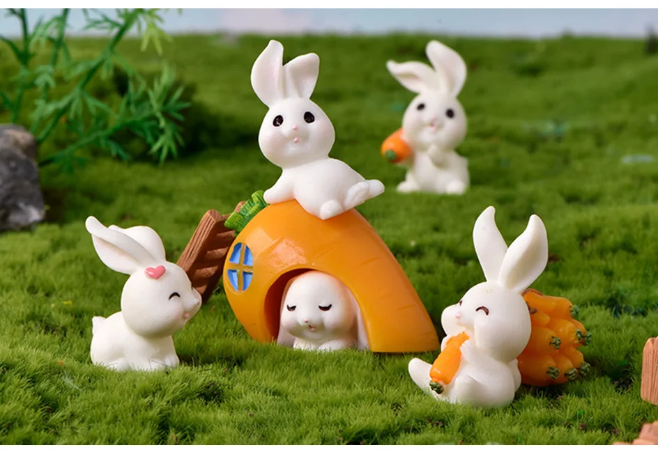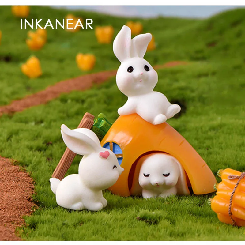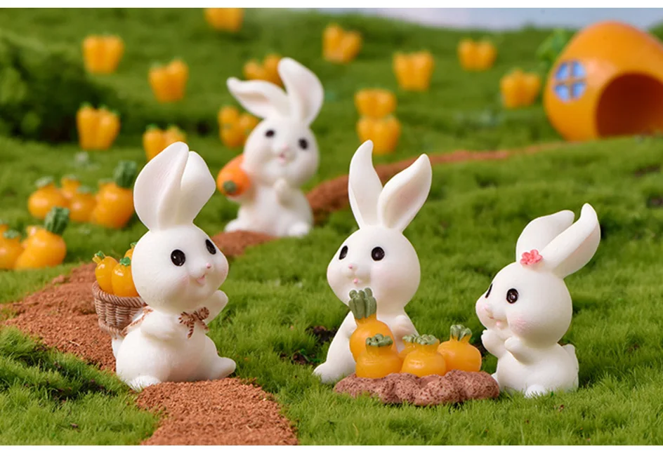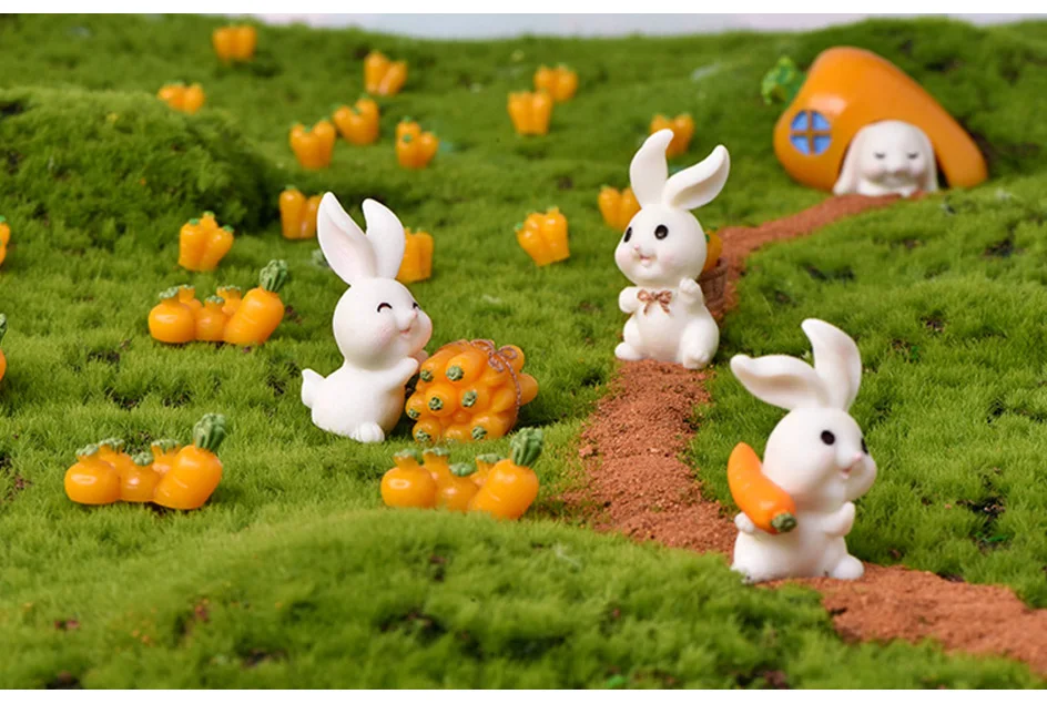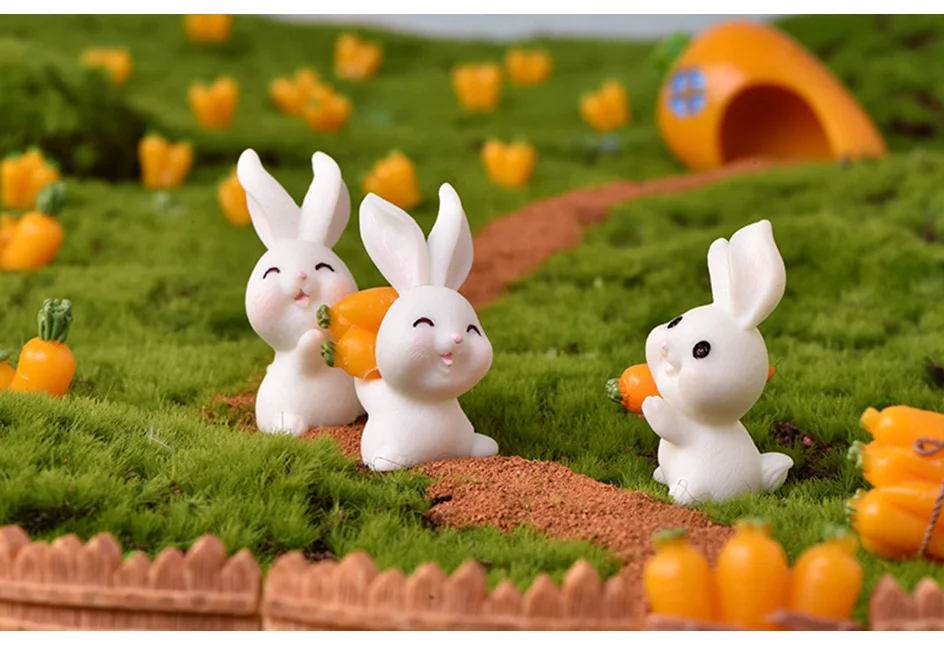 Садовый милый кролик, Пасхальная игровая фигурка, фея, морковь, модель, украшение, миниатюры, подарок для детей, ремесленные фигурки для фонтанов