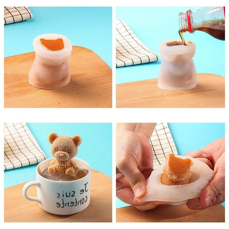 3D силиконовая форма в виде медведя, форма для льда, подносы для шо...