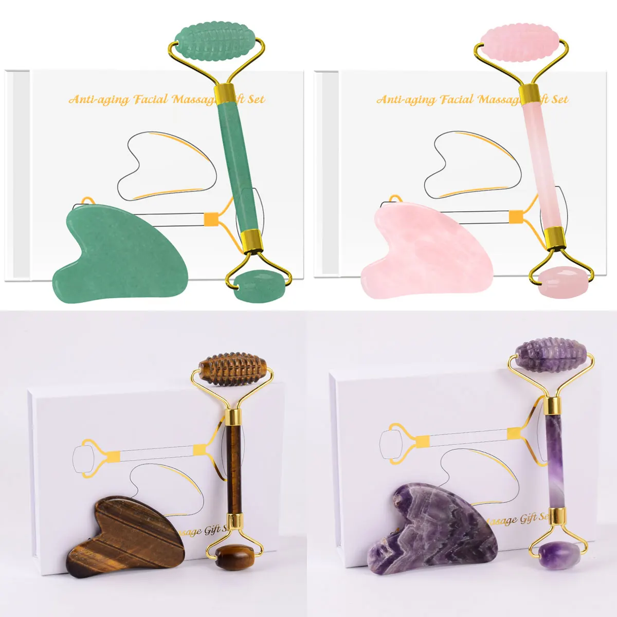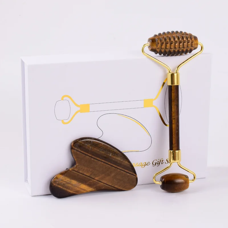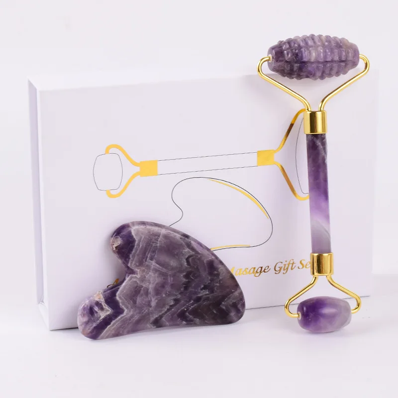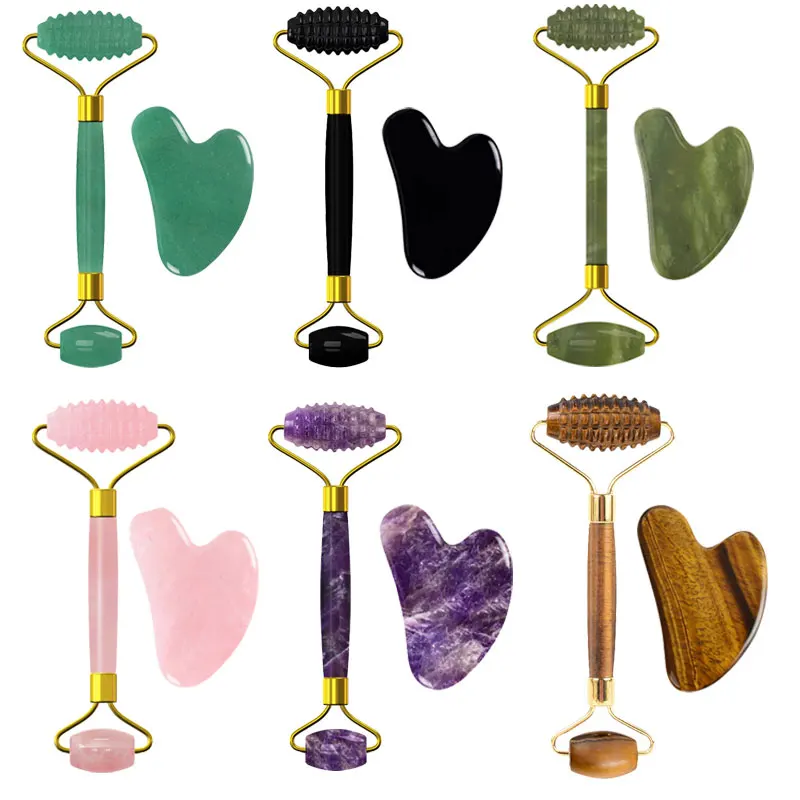Скребок для гуаши из розового кварца ролик для массажа лица, набор скребков Gua Sha, натуральный камень для гуаши нефритовый ролик-массажер для лица с коробкой