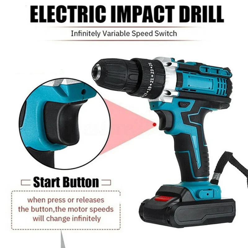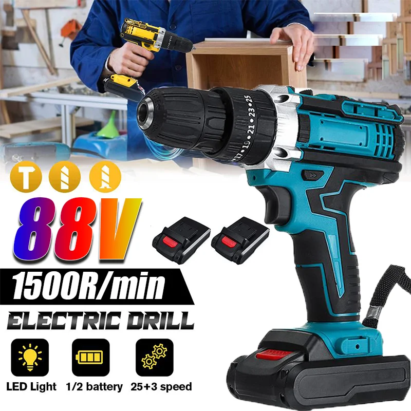 88 в Беспроводная Дрель 38н. М электрическая отвертка с 2 переменной скоростью 1500 Вт литиевые электроинструменты электрические дрели быстрое зарядное устройство