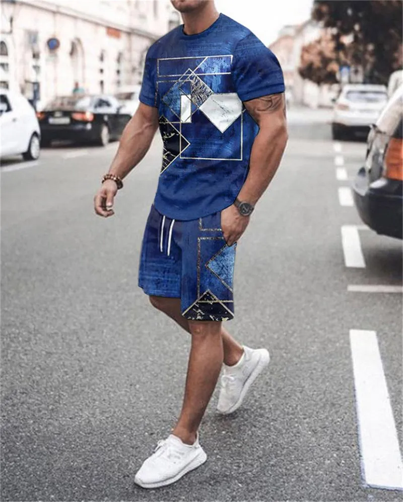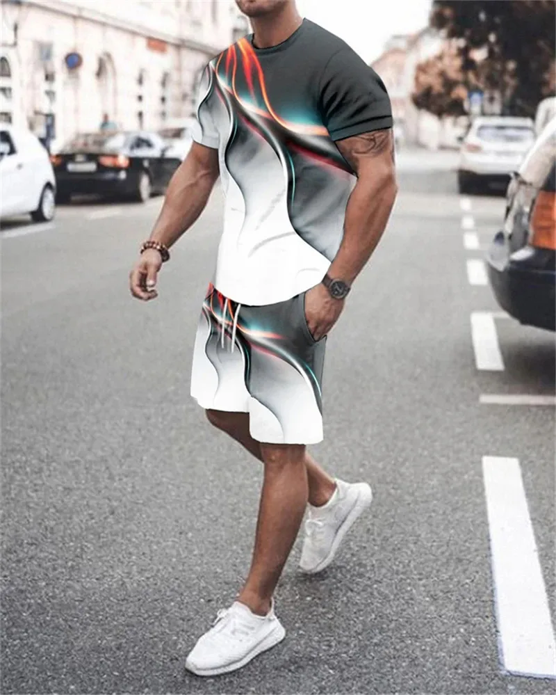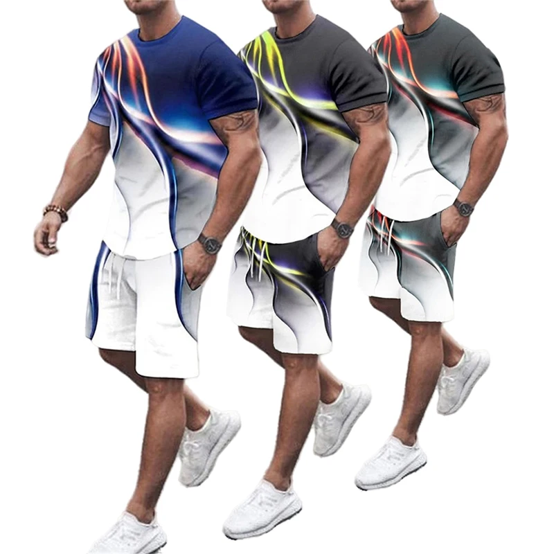 Костюм спортивный мужской с 3D-принтом, Повседневная рубашка и шорт...