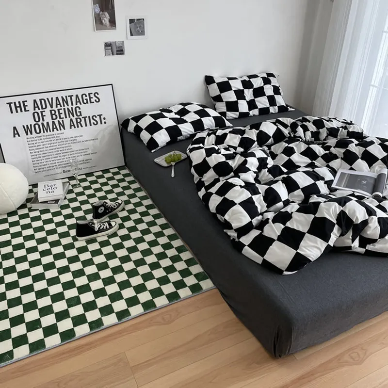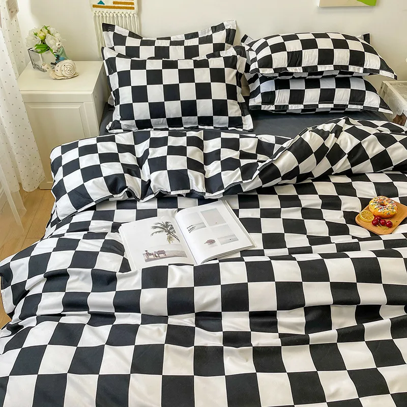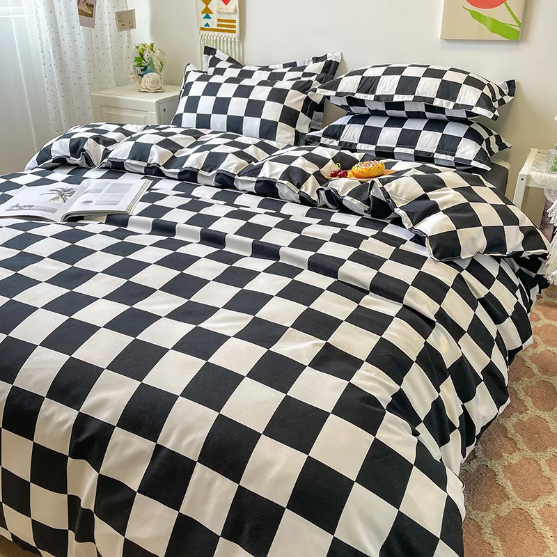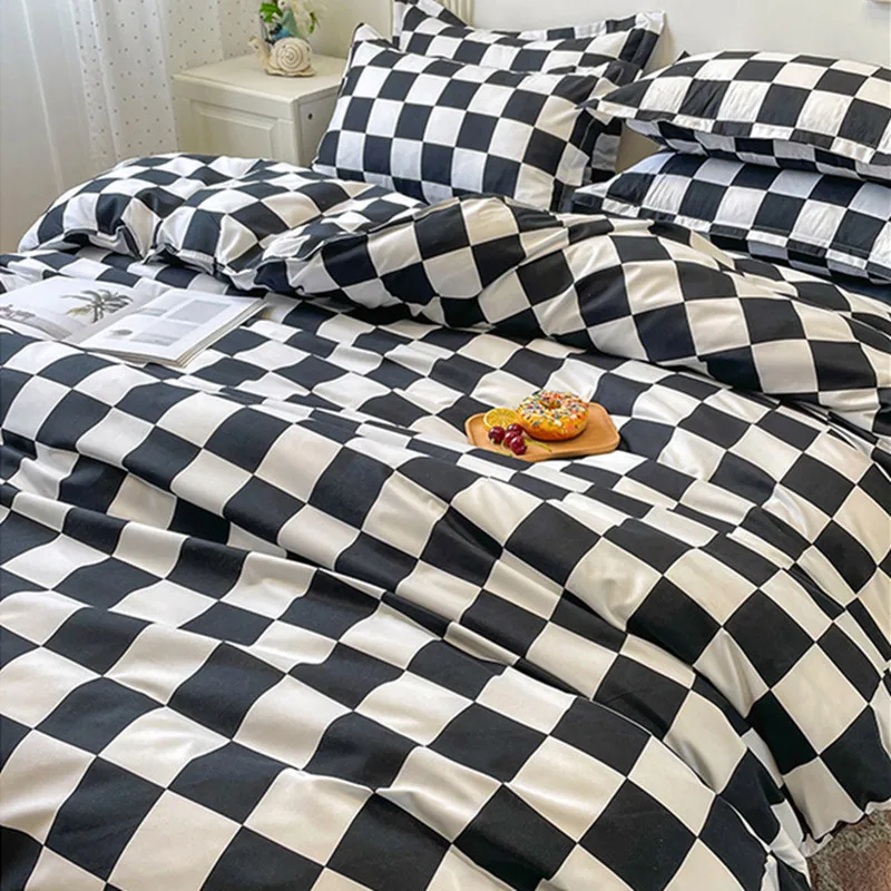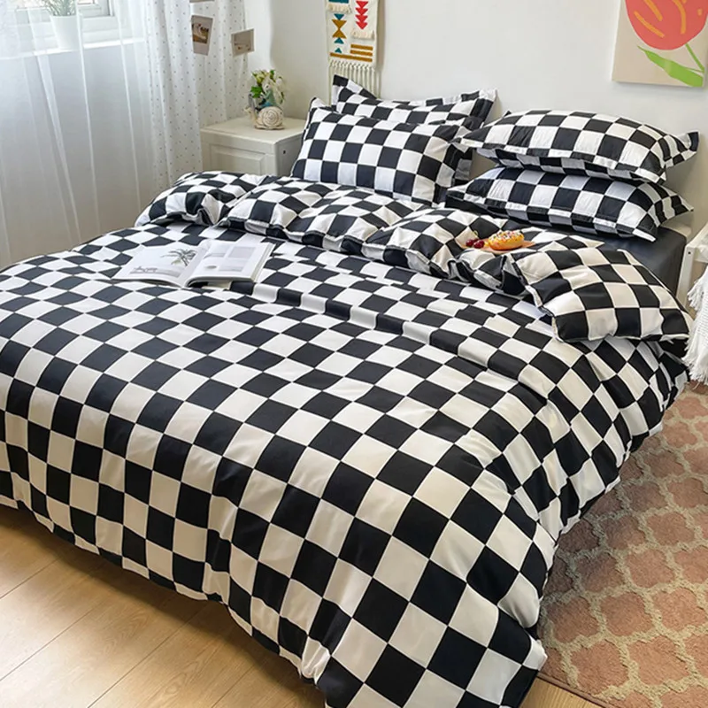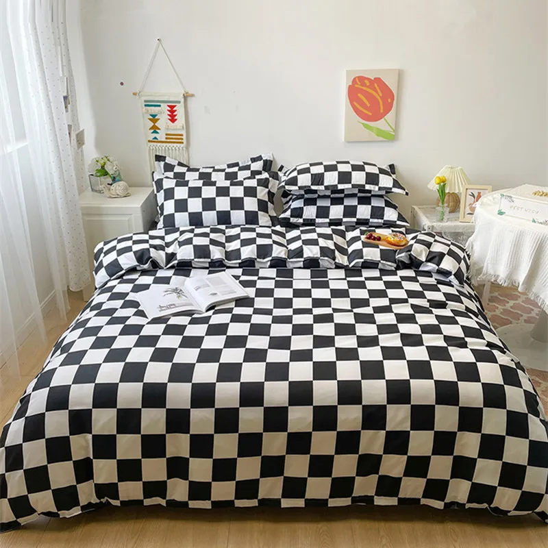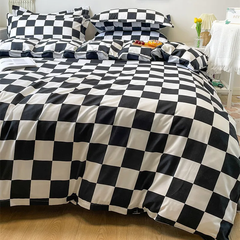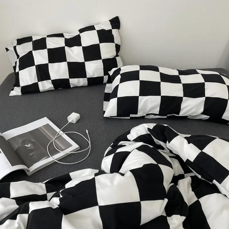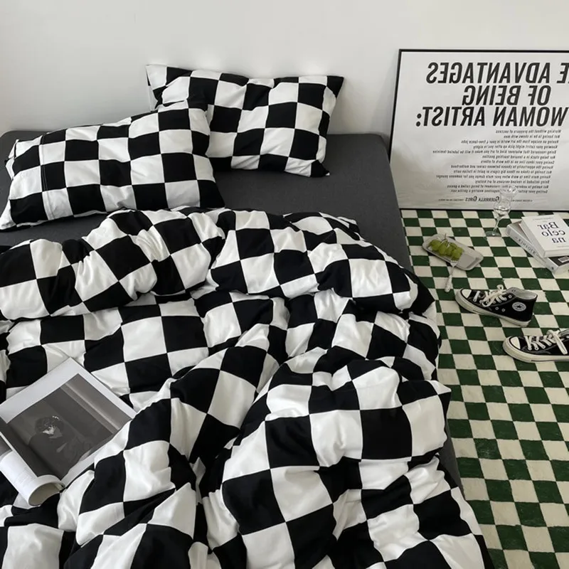 Комплект постельного белья в клетку, в скандинавском стиле, черно-б...