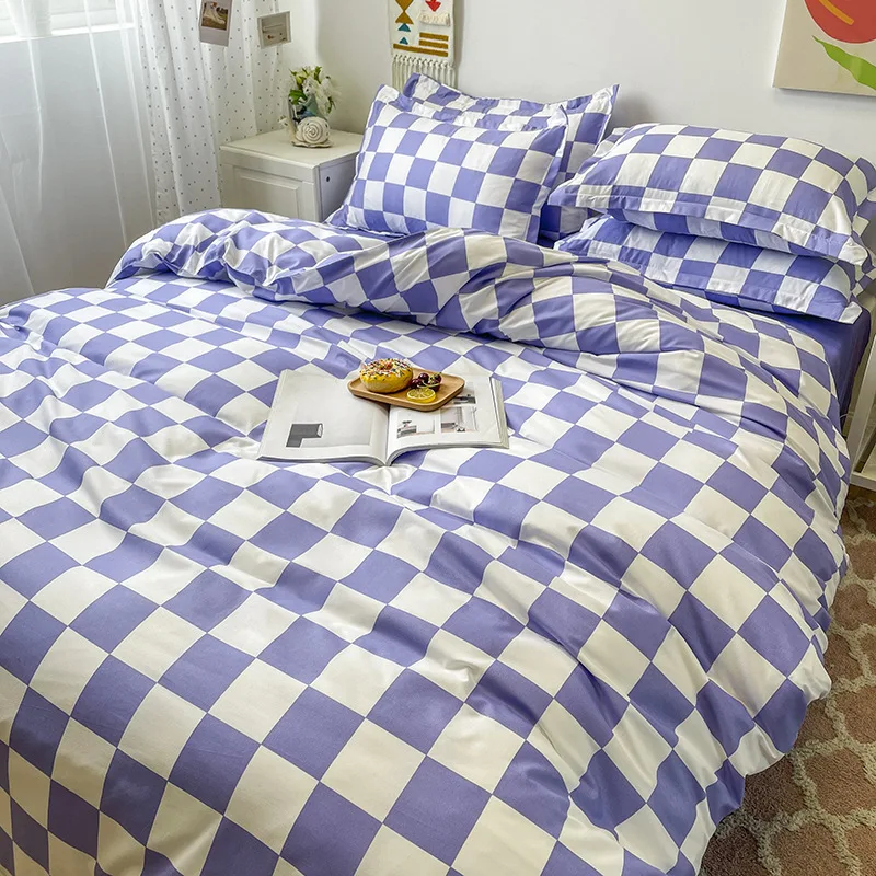 Модный клетчатый узор пододеяльник подушка чехол кровать простыни п...