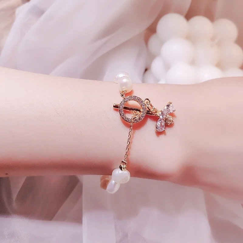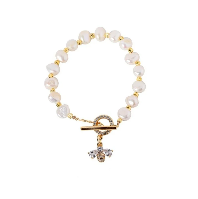 Модные ювелирные изделия, высококачественный браслет из натурального пресноводного жемчуга в стиле барокко, дизайн пчелы, женский браслет