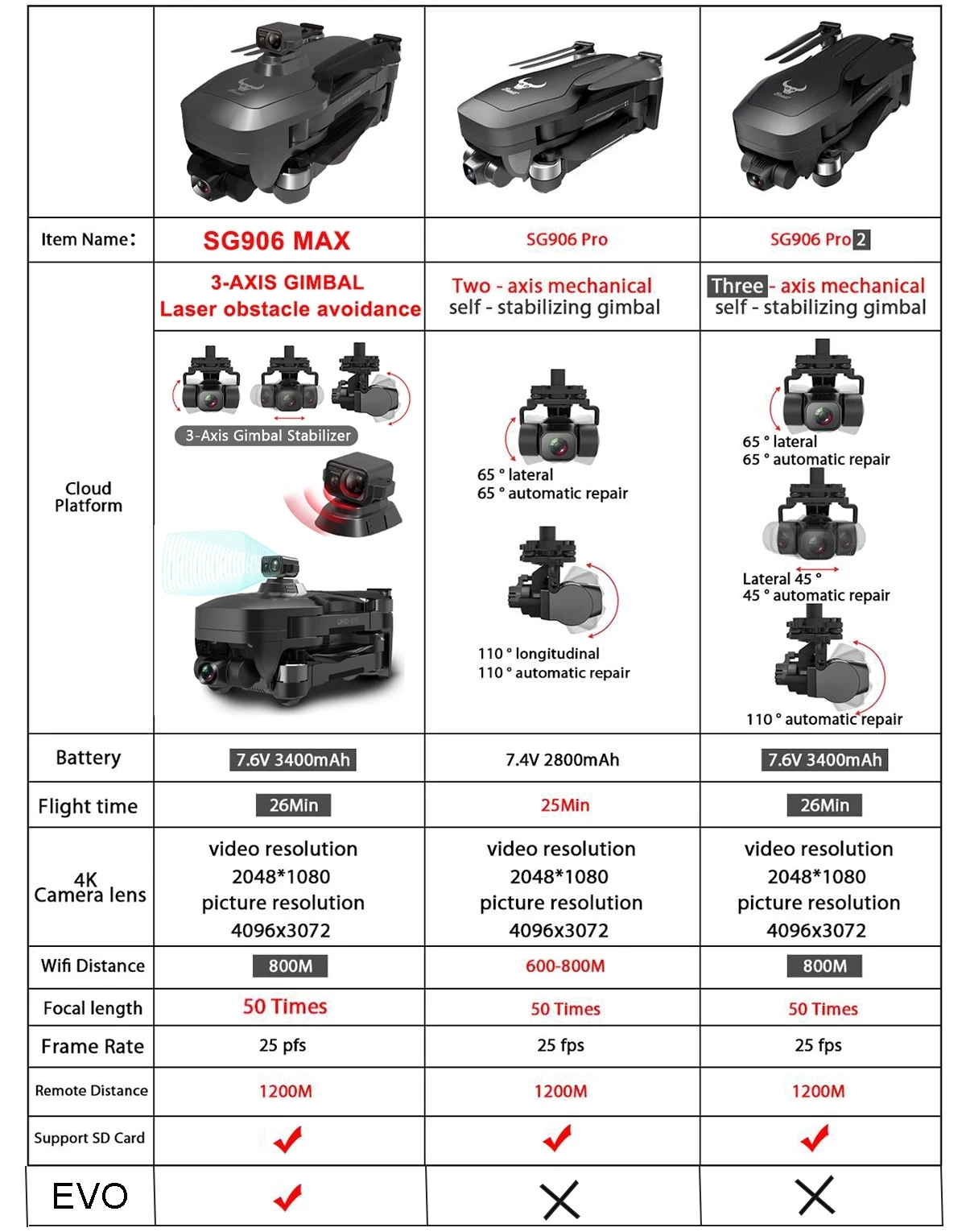 Beast3 SG906 MAX предлагает множество интеллектуальных режимов полета, кроме общих функций, GPS возврата домой, двойной камеры, GPS позиционирования, оптического позиционирования потока, перелета путевой точки, точки заинтересованности, следуйте за мной доступны. 3-осевая стабилизированная gimbal и улучшенный 4K Камера позволяют снимать более стабильным и четкое изображение. Функция предотвращения препятствий обеспечивает гарантию безопасного полета дронов. Профессиональная аэрофотосъемка дает преимущества от более длительного времени полета, Дрон имеет максимальное время полета 26 минут, что позволяет больше времени в воздухе, чтобы запечатлеть идеальный снимок. Благодаря функции возврата одной кнопкой Дрон может легко найти свой путь домой. Легко снимать или приземляться одной кнопкой через пульт дистанционного управления, и легко управлять дроном без необходимости двухручного управления. Отличный компаньон для вас.