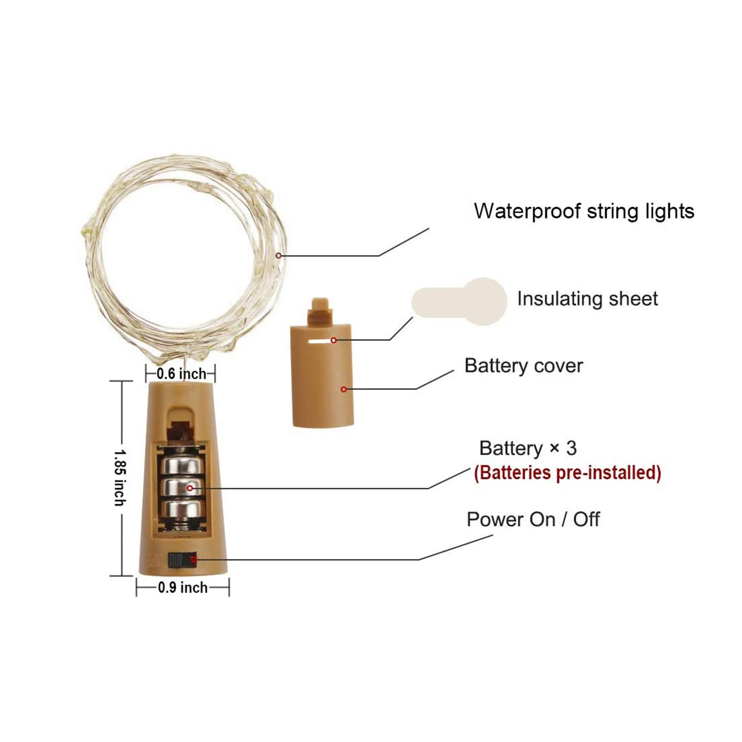 【Качественные батареи предварительно установлены 】 каждая пробковая лампа для винных бутылок питается от 3 батареек LR44 (батареи уже установлены)