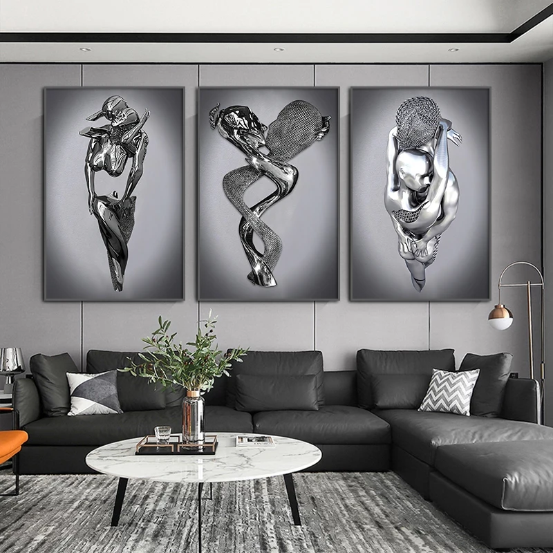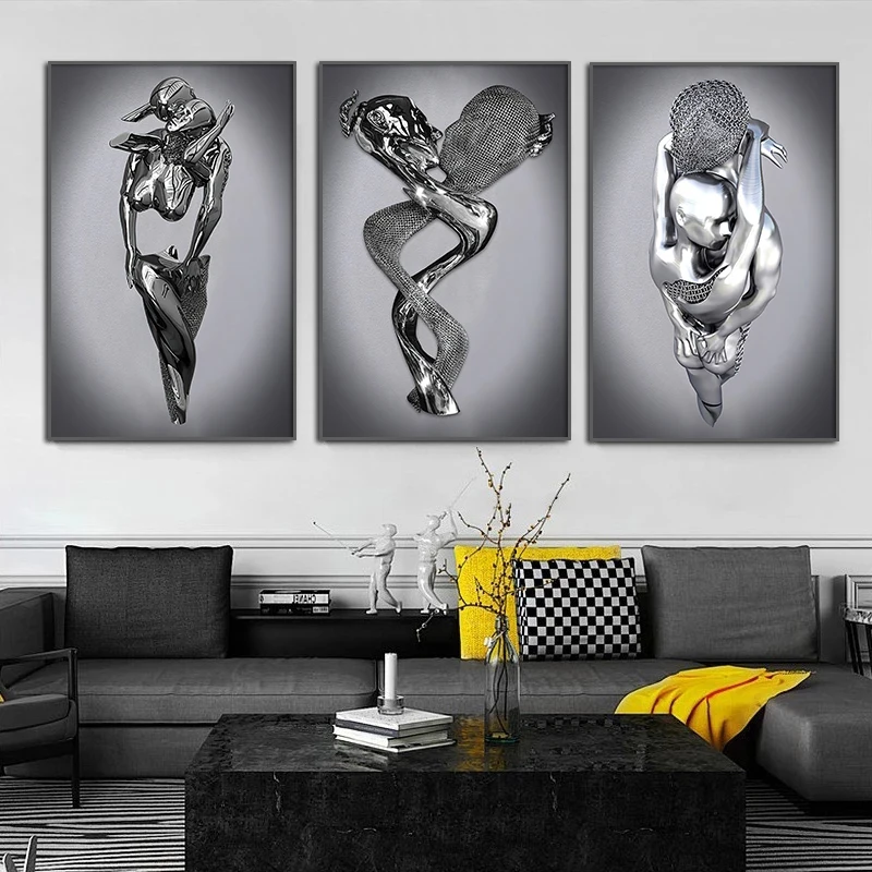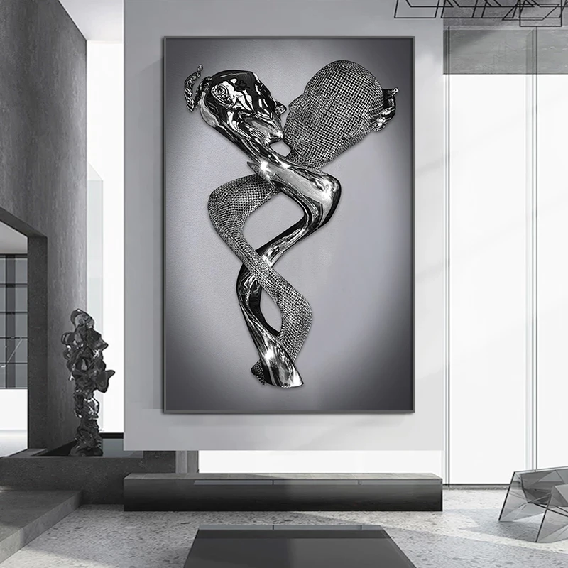 Абстрактная Металлическая фигурка, искусство, плакат и принты, Современная романтическая Картина на холсте, Настенная картина для гостиной, домашний декор