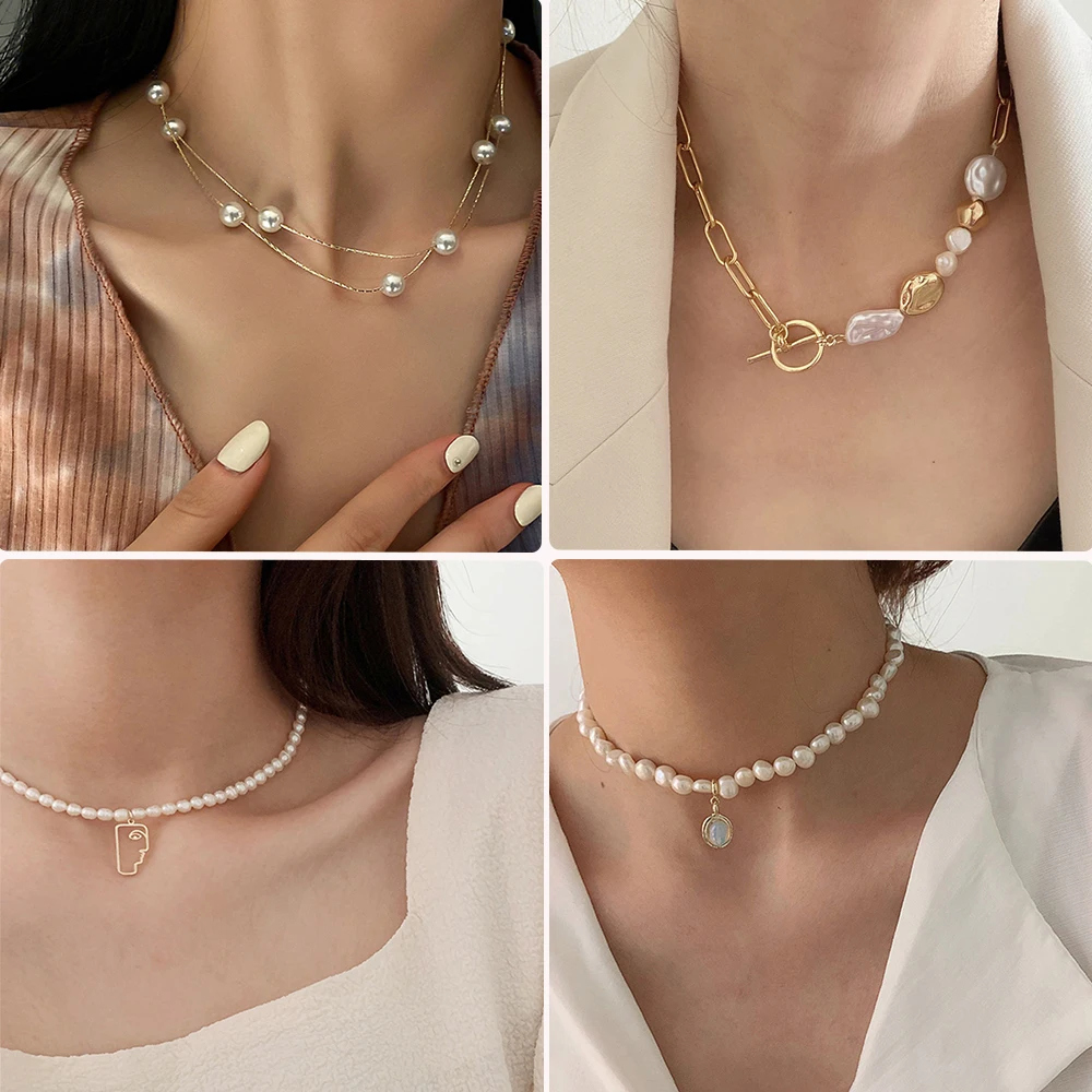Модное корейское жемчужное ожерелье для женщин, ретро ожерелье неправильной формы с имитацией жемчуга до ключиц, женская свадебная бижутерия, подарки
