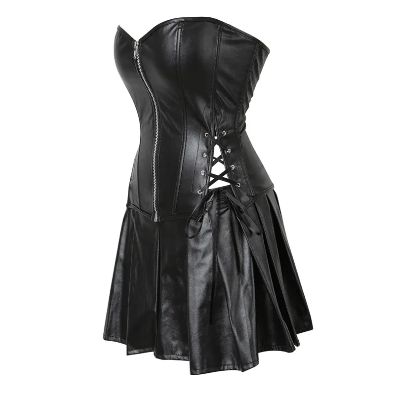 Сексуальные кожаные платья Корсеты юбка в стиле Бурлеск молния спер...