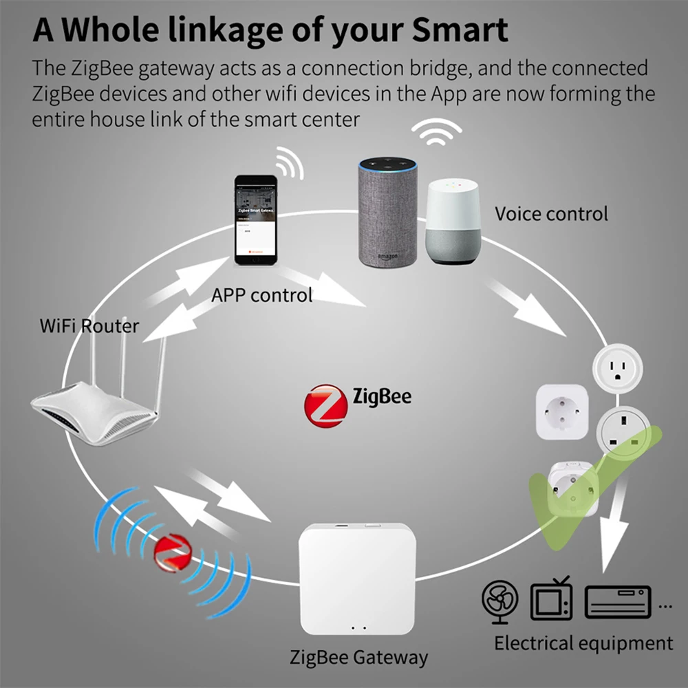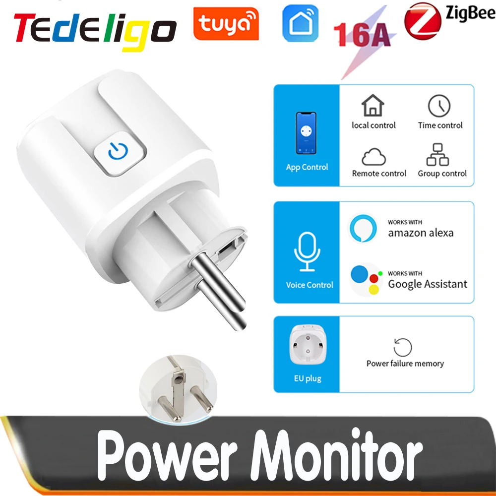 Смарт-розетка ZigBee, 16 А, с голосовым управлением и таймером
