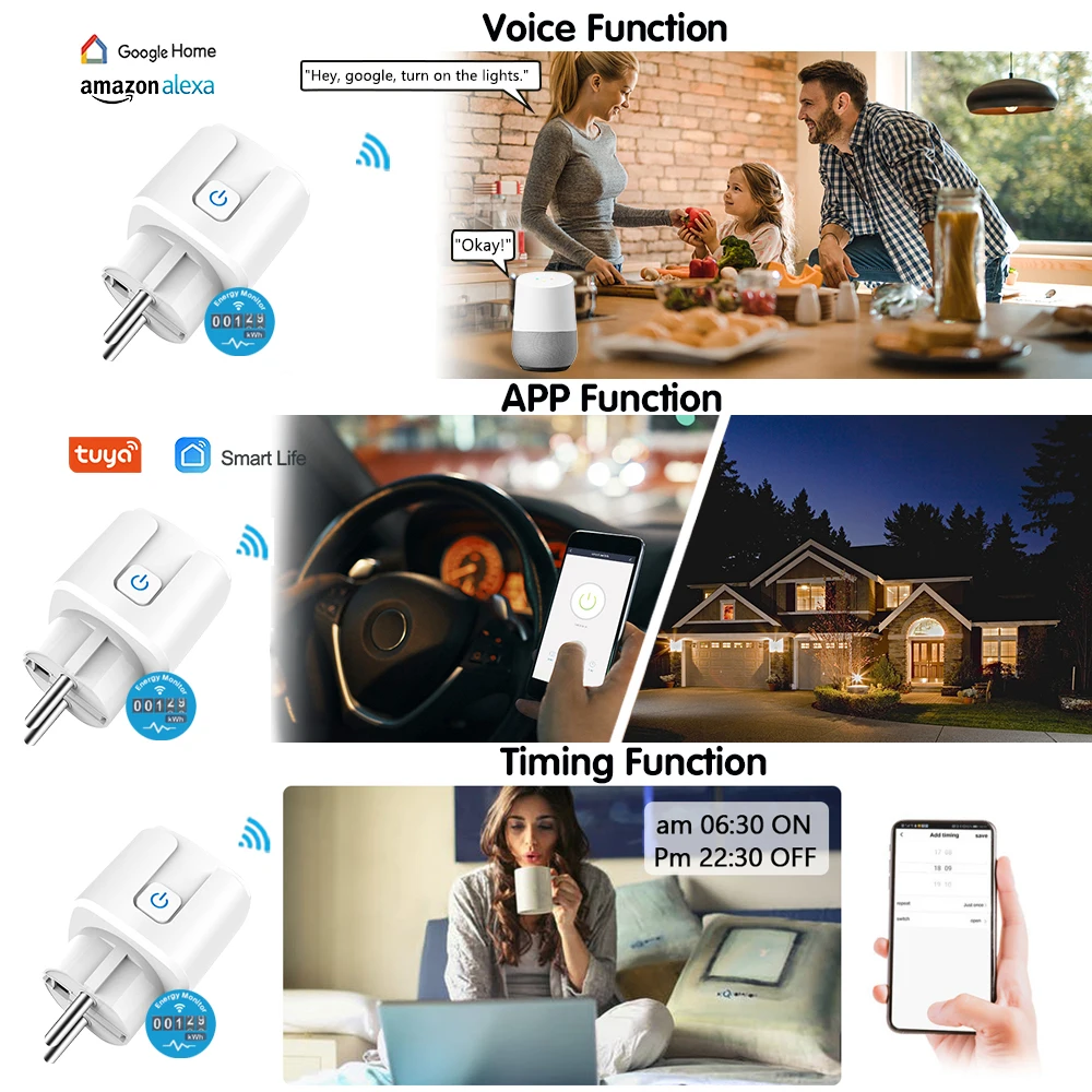 1: Найдите «Smart Life или Tuya Smart» в APP store, Google Play или отсканируйте qr-код в руководстве пользователя, чтобы загрузить и установить его. 2: Откройте телефон Bluetooth и WIFI 2: Пресс кнопки на вилку до тех пор, пока индикатор светильник флэш-памяти. Вы также можете услышать голос. 3: Откройте «Smart Life или Tuya Smart App», откройте и добавьте устройство в приложение, а затем завершите конфигурацию в соответствии с руководством.