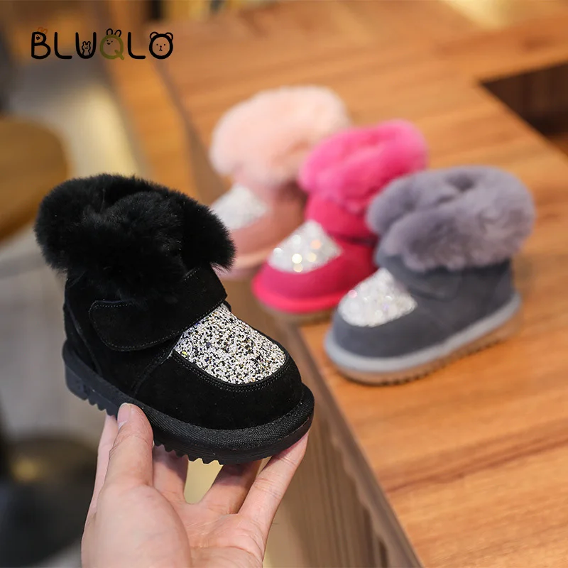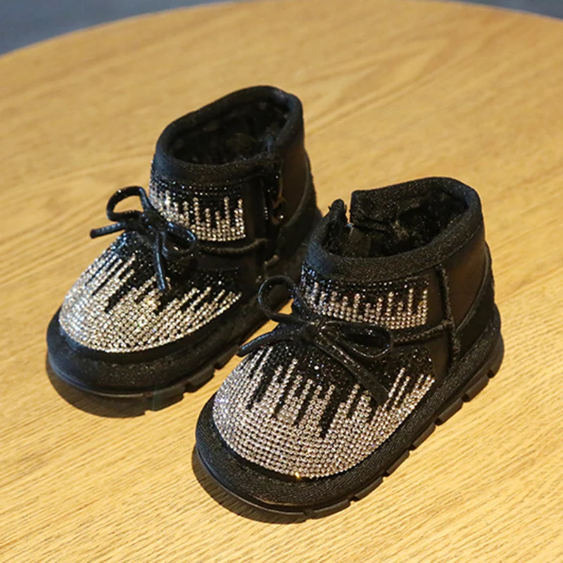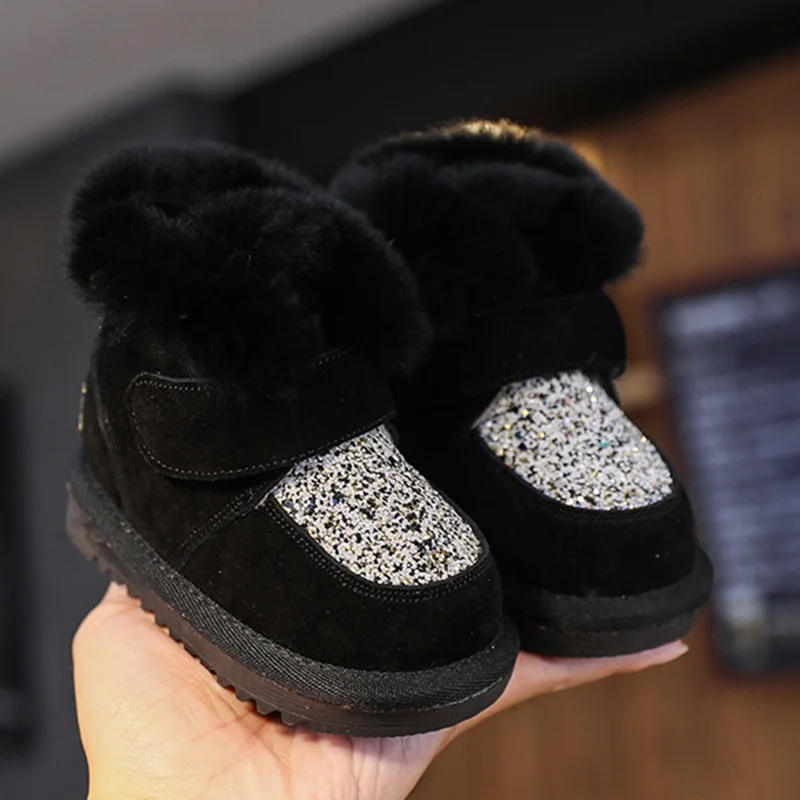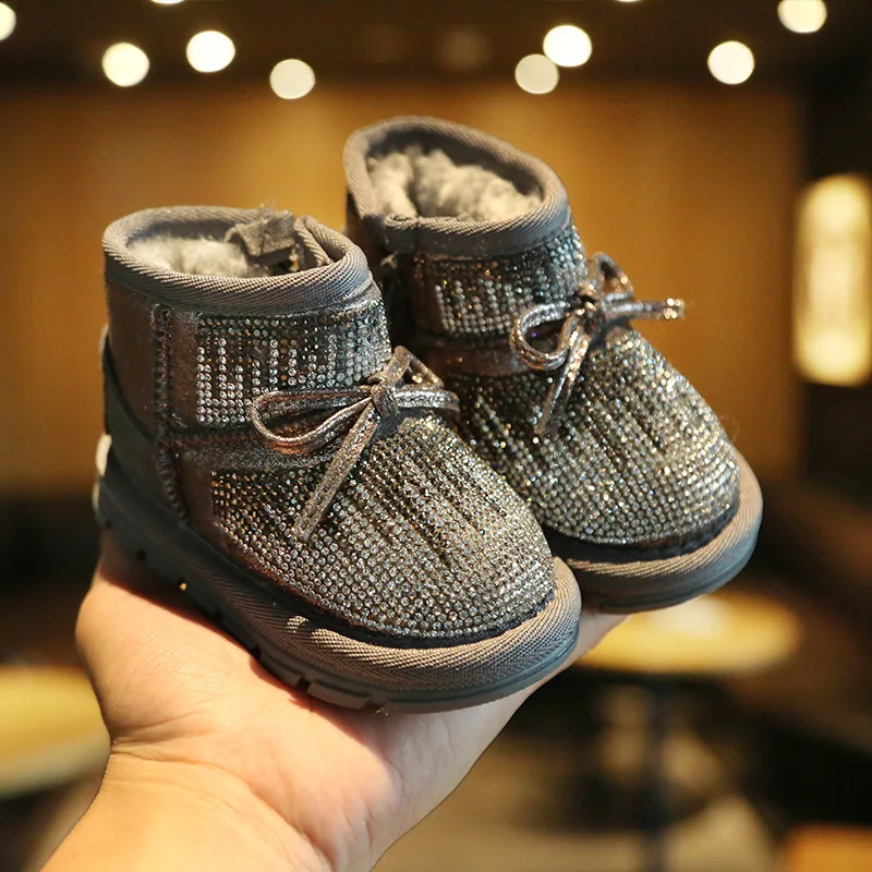 Детские зимние ботинки с бантом, короткие ботинки принцессы с блестками для девочек, детская теплая плюшевая обувь, повседневные кроссовки для подростков и студентов, зима 2021