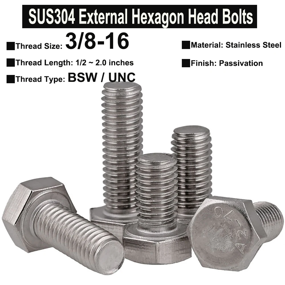 5 шт. 3/8-16x 1/2 ~ 2 дюйма SUS304 нержавеющая сталь внешняя Шестигранная головка Болт Винт BSW / UNC резьба