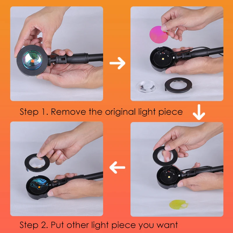 Fast delivery. Beautiful sunset lamp, it can also change 4 colors, and have stable base. convenient and good quality. The photos taken look nice, there is a sense of atmosphere, recommended this product!