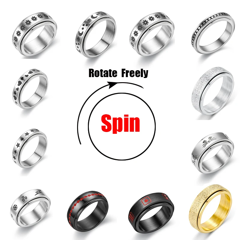 Модные кольца-Спиннеры для женщин и мужчин, свободно вращаются, антистрессовые аксессуары, ювелирные изделия, луна, звезда, тревожное кольцо из нержавеющей стали